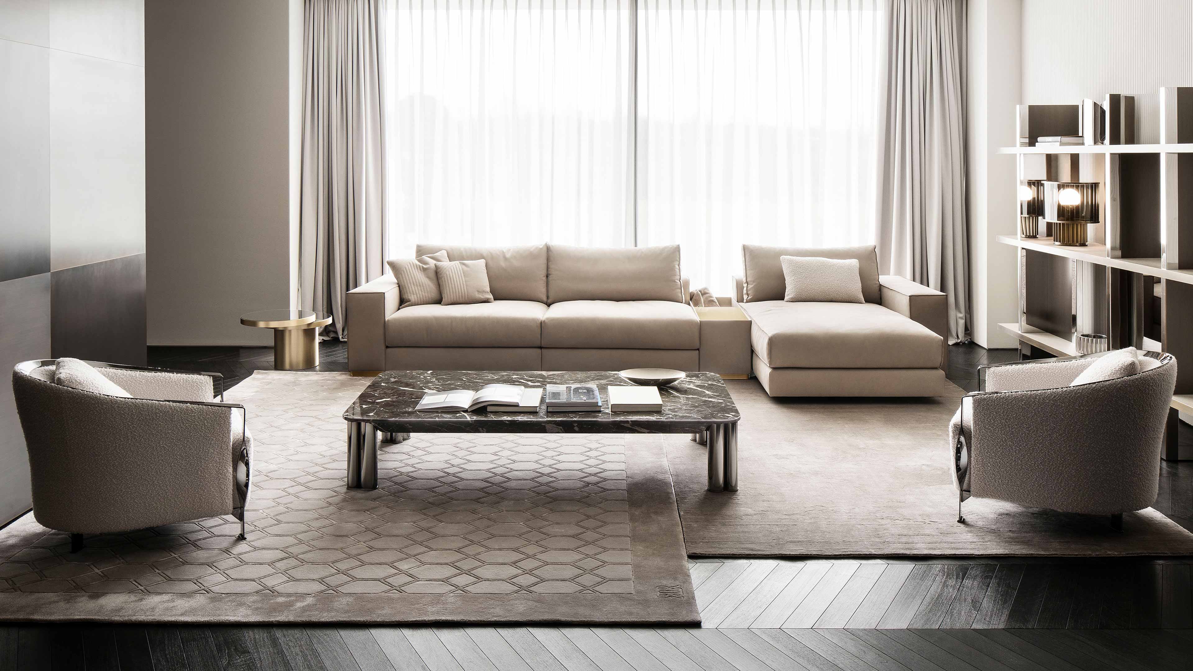 Armchair characterised by its twisted structure, finished in bronze or upholstered. Outer surface available plain or with matelassé pattern.