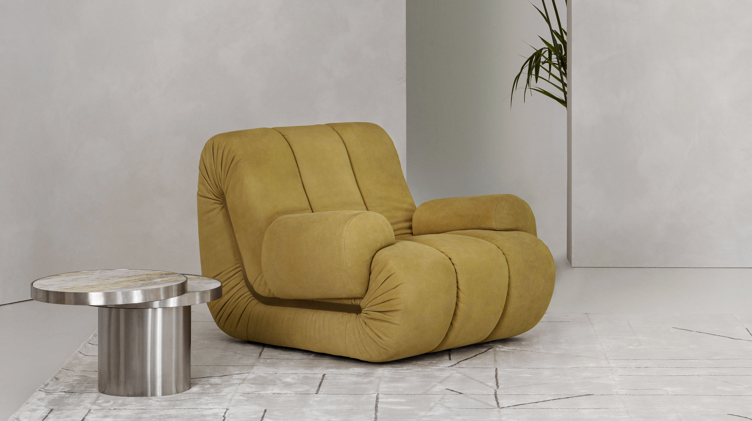 Snake redefines the armchair as an immersive experience of form and materiality. Its sinuous lines wrap around the body with confidence, shaped by balanced volumes and fluid silhouettes that evoke movement even in stillness. Every curve is designed to embrace, offering a seat that blends visual softness with tactile comfort.