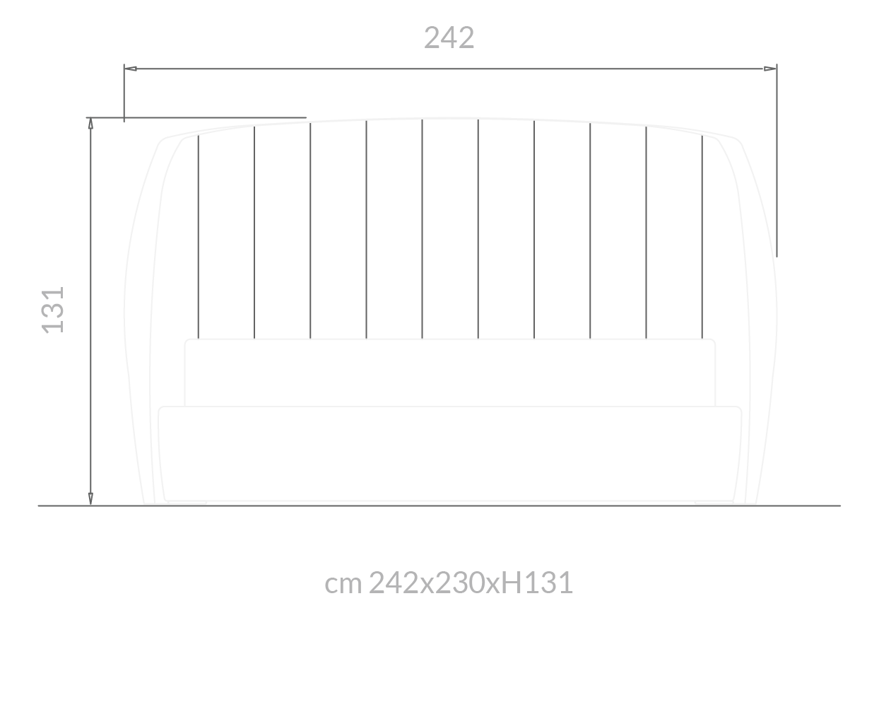 The Dama bed is a masterpiece of balance between architectural strength and sartorial refinement. The large upholstered headboard, marked by regular vertical stitching, creates an elegant and solemn visual rhythm, transforming the wall into a striking scenic backdrop. Framing this imposing volume, a metallic structure envelops the headboard with a bold, precious gesture, reflecting light with sophisticated gleams and bestowing an aura of exclusivity.