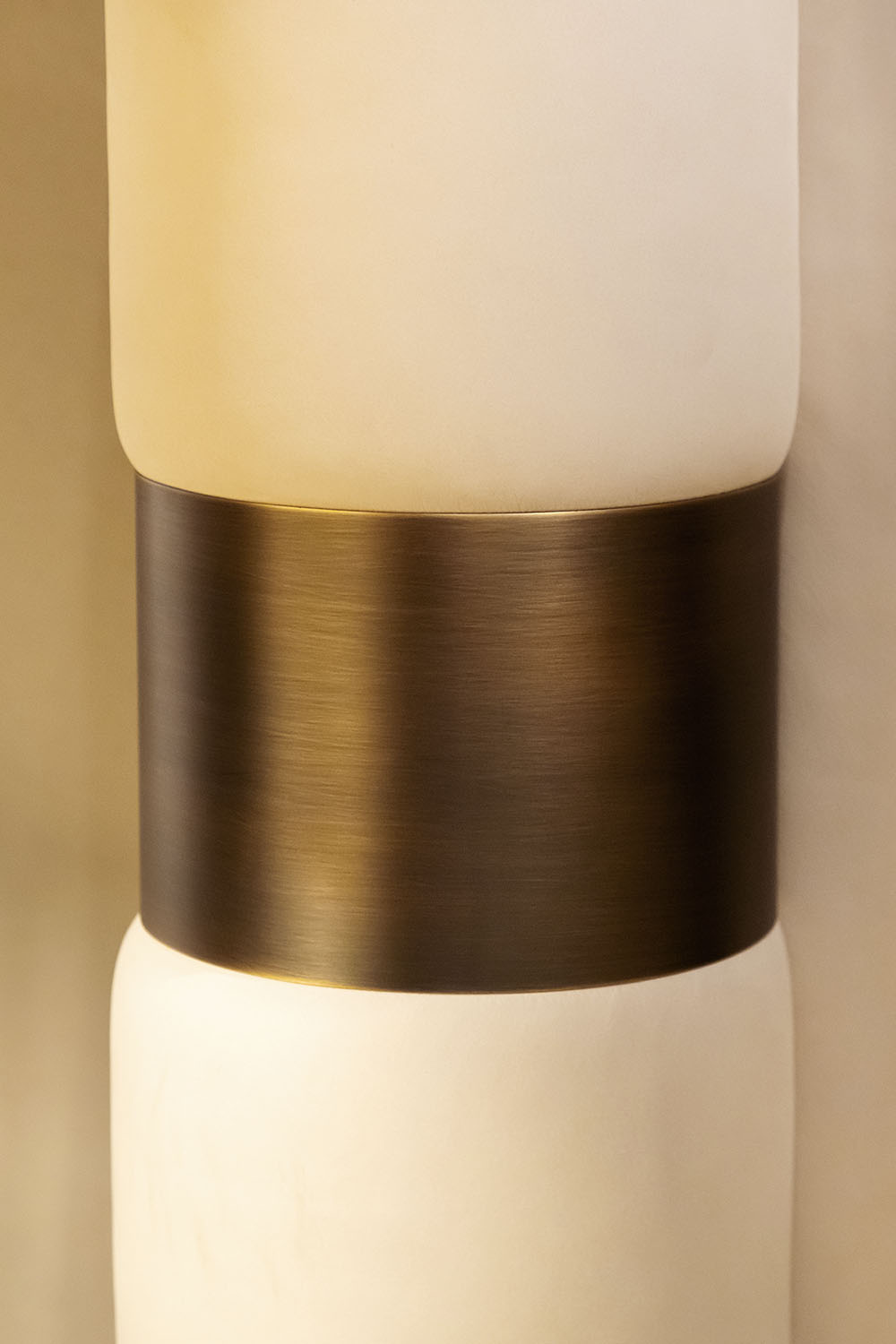 The Loom bed stands out for its imposing upholstered headboard, embracing the entire structure with generous, enveloping lines. The upholstery, available in fine leather or fabric, enhances the soft, continuous curves, creating a silhouette of striking visual impact. Horizontal metallic inserts elegantly interrupt the verticality of the headboard, introducing a precious, contemporary accent that further elevates its scenographic presence.