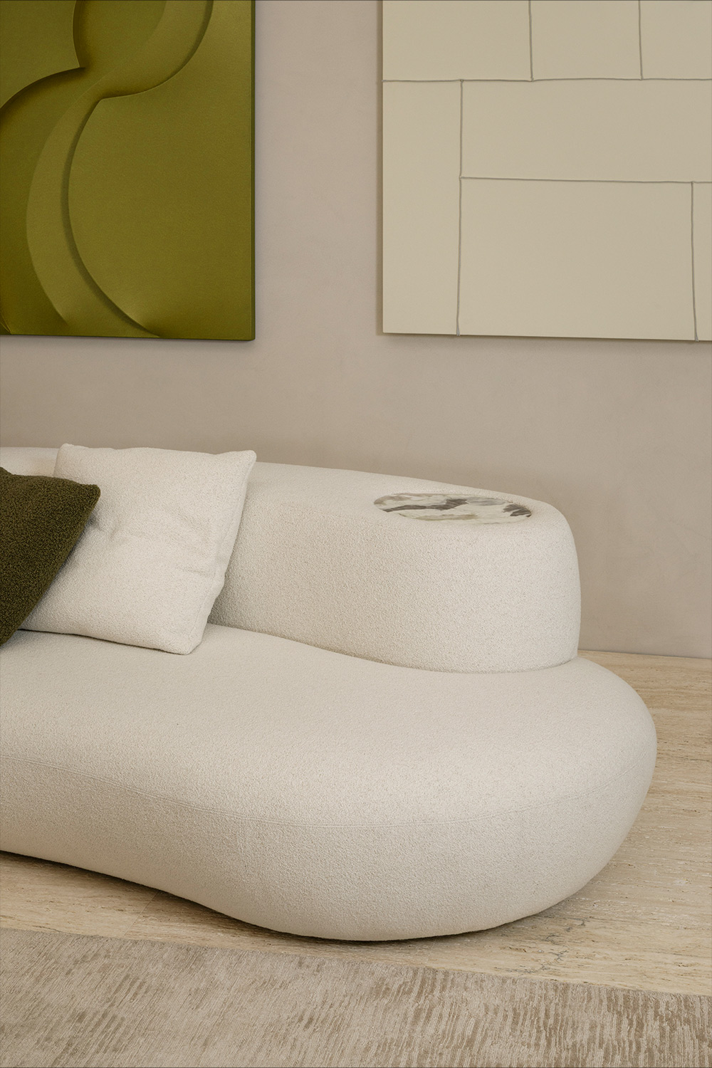 The Rafael chaise longue stands out for its organic and fluid design, where soft forms meet the expressive strength of a monolithic volume. Designed to offer a deeply sophisticated comfort experience, Rafael reinterprets the concept of relaxation with a contemporary language made of seamless, continuous, and inviting lines.