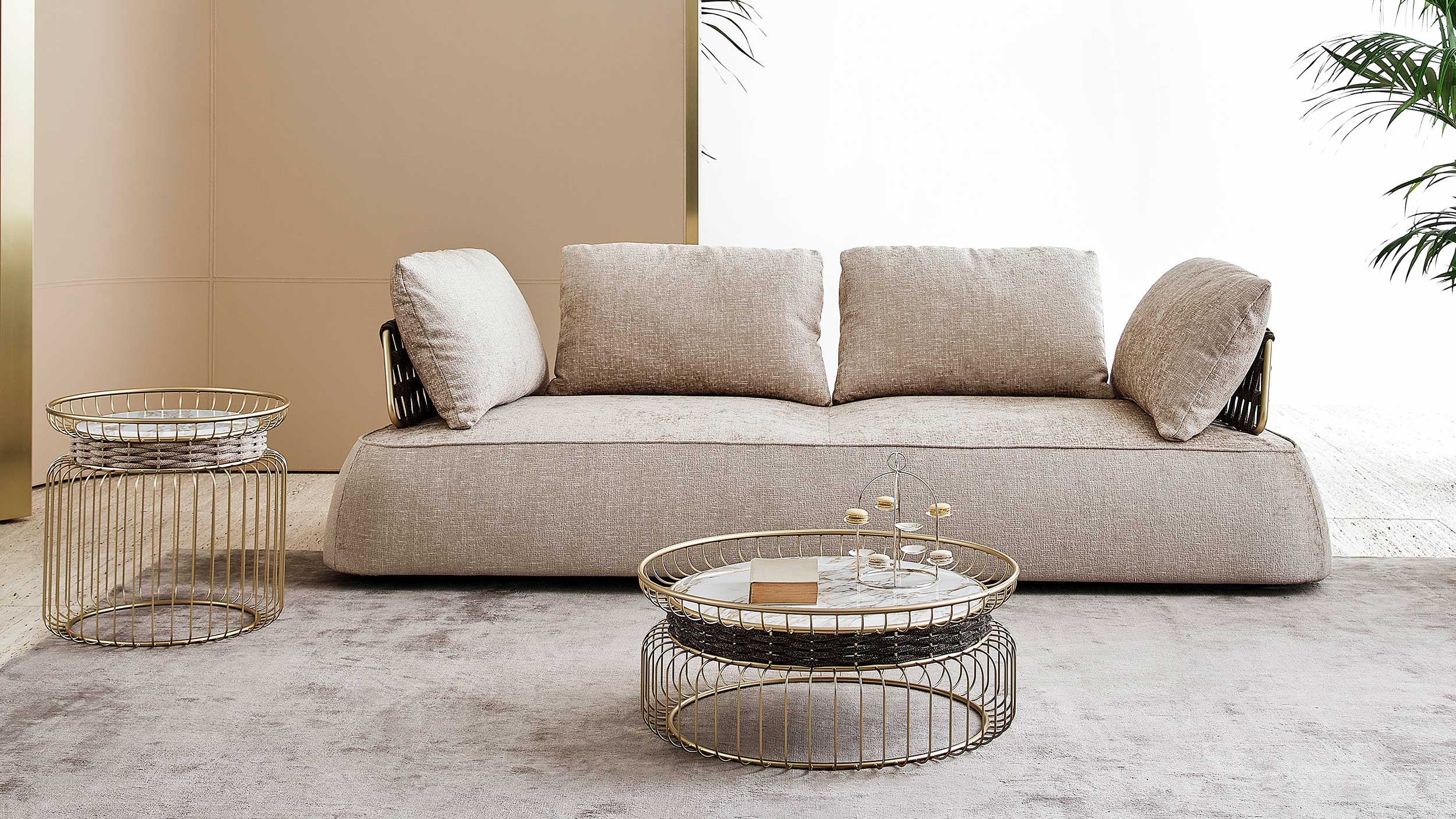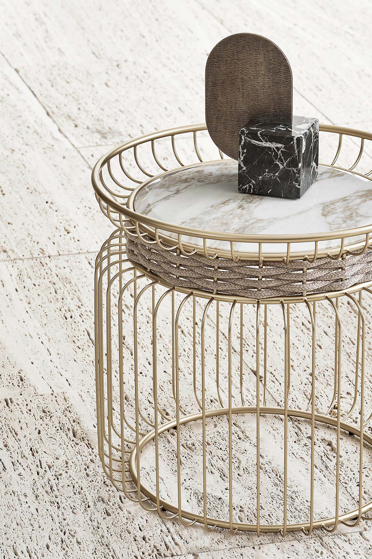 Top available in marble with upholstered detail. Available in a range of dimensions