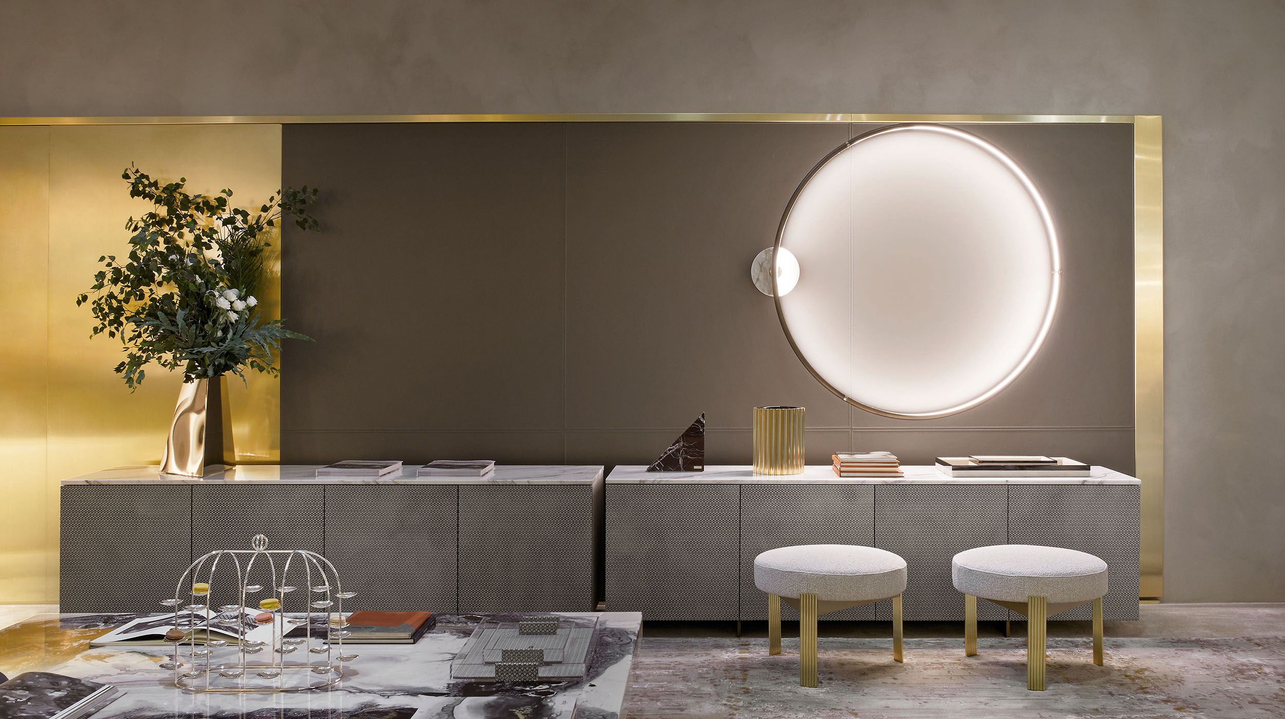 The epitome of Rugiano craftsmanship. The brass surface is manually worked to create an irregular, textured surface that catches the light vibrantly, making each piece unique to the touch and sight.