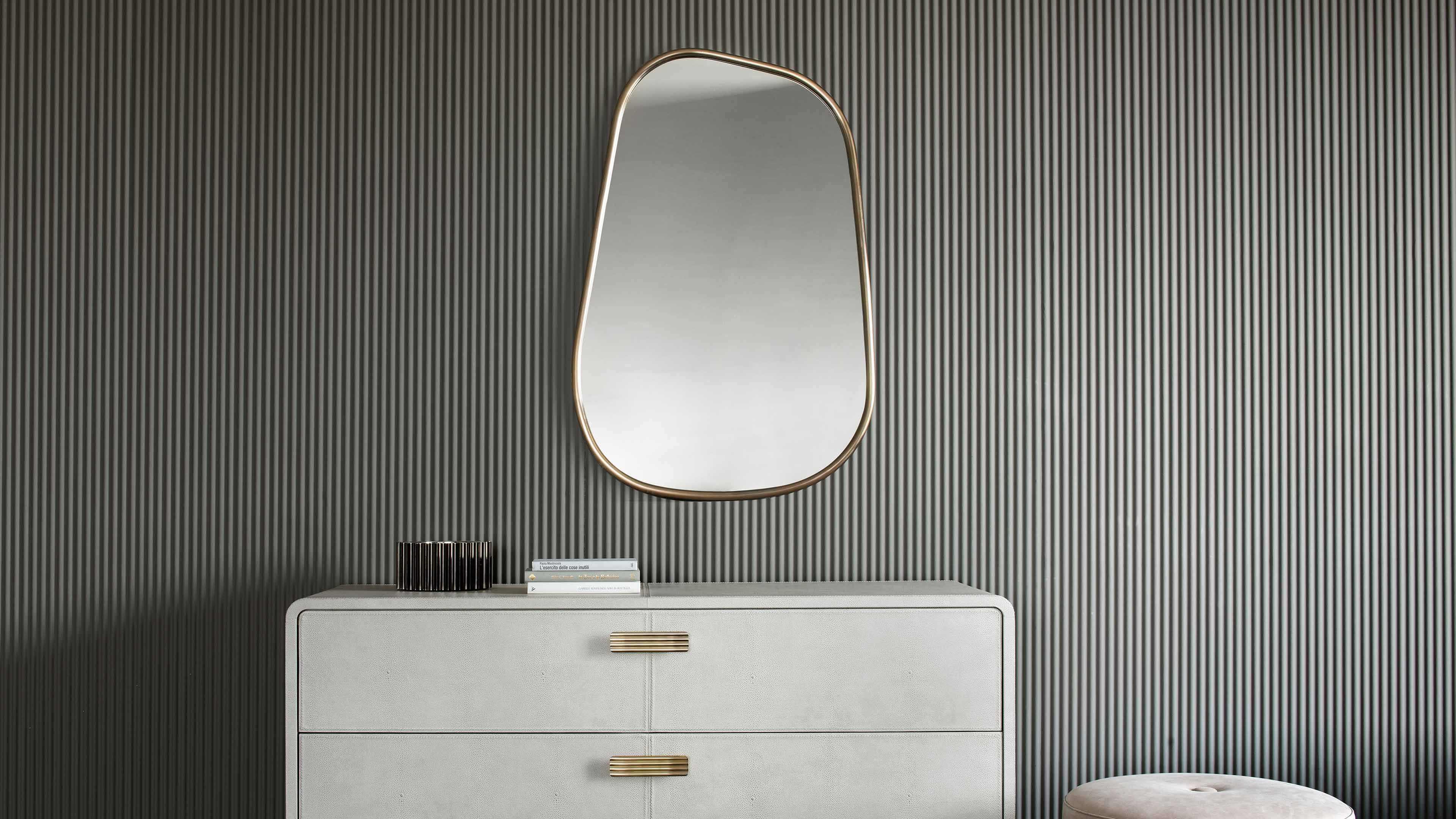 For the collection of irregular shapes mirrors, bronze frame slightly rounded.