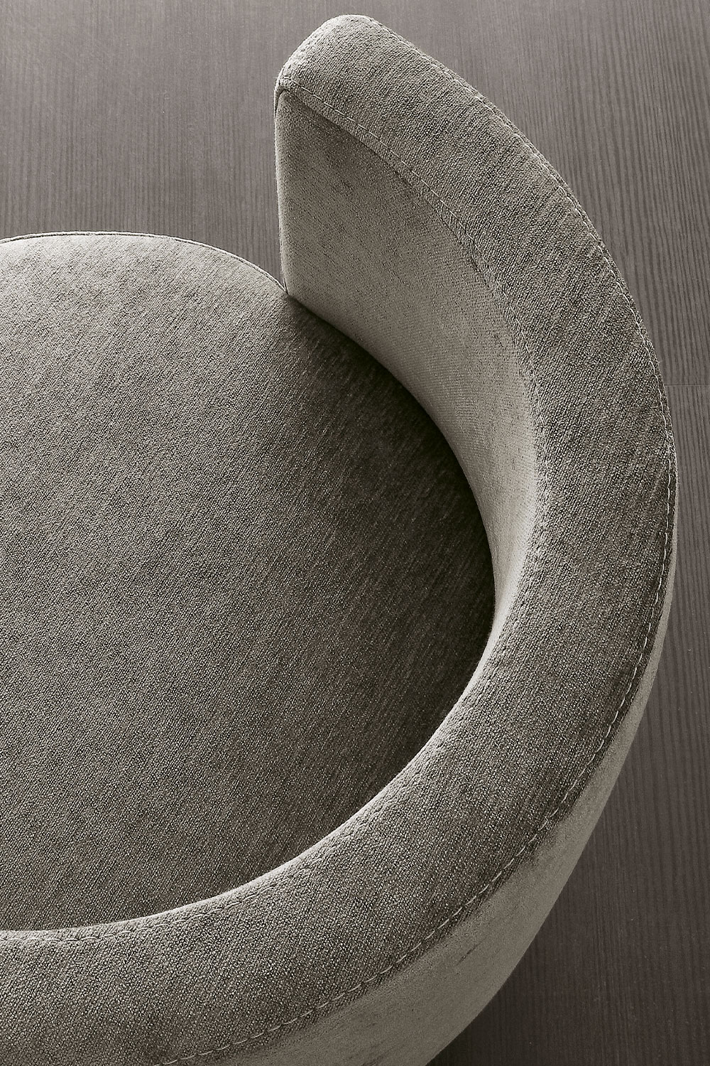 The Love Seat pouf interprets the circular form with a contemporary, sensual aesthetic, transforming an essential volume into a small furnishing piece with a strong, distinctive character. The full, generous seat meets an embracing asymmetric backrest, shaped like a gentle curve that offers support and defines its iconic silhouette. Carefully balanced proportions and exquisite upholstery highlight the tactile beauty of Rugiano’s fabrics, enhancing every material nuance.
