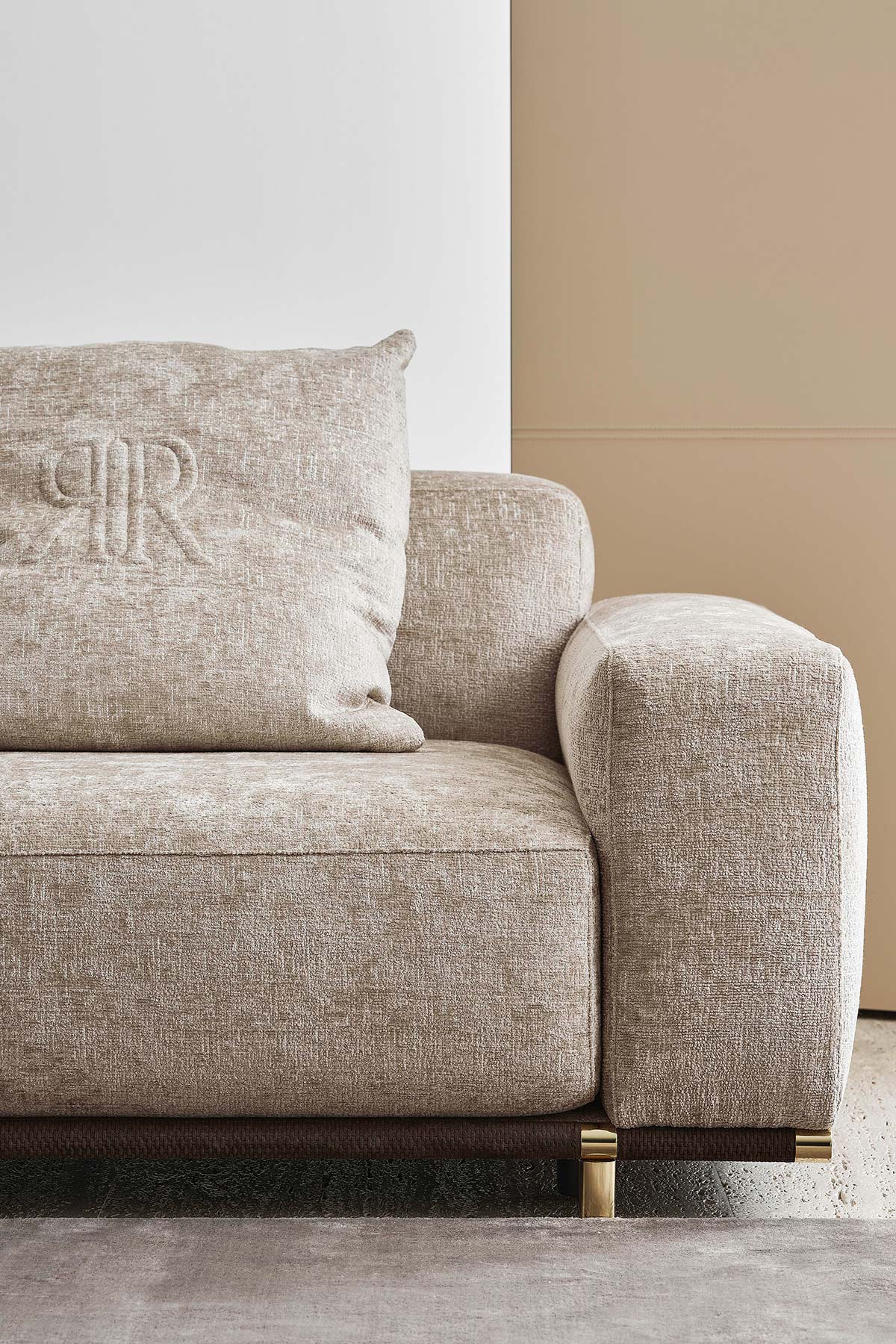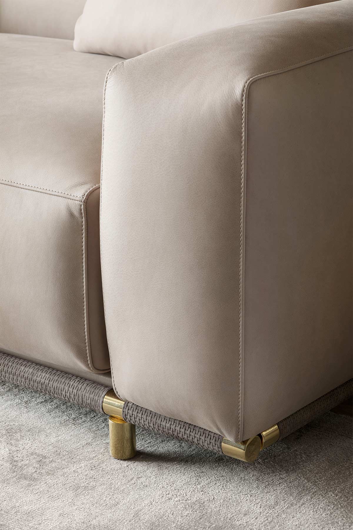 Range of seating elements with base made of metal and upholstered in leather. Details in gloss gold or bronze.