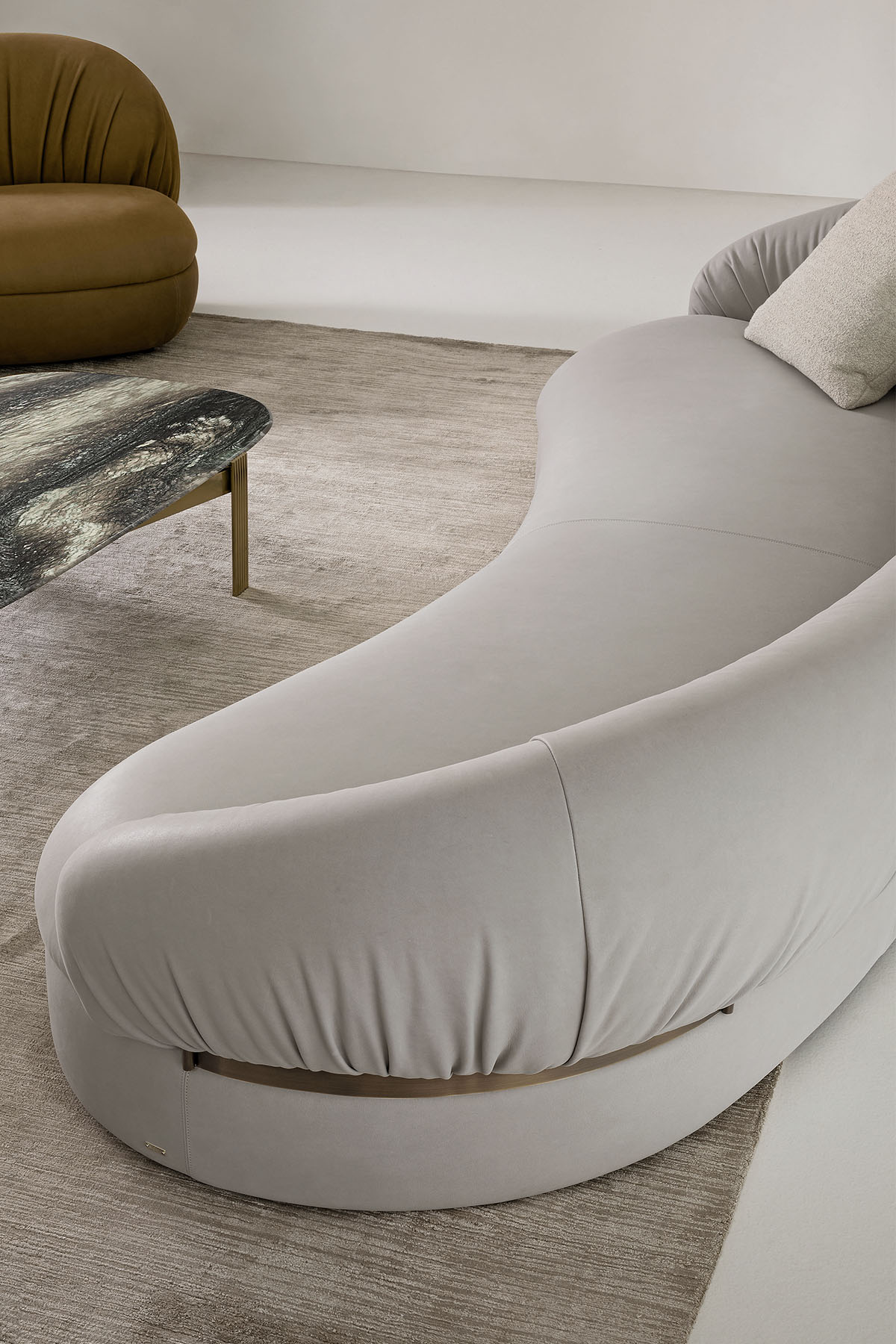 Seat integrated with the base and rounded shapes on which an enveloping back rests are the characteristics that make the Fandango sofa a product that is not only ergonomically perfect but also visually appealing.