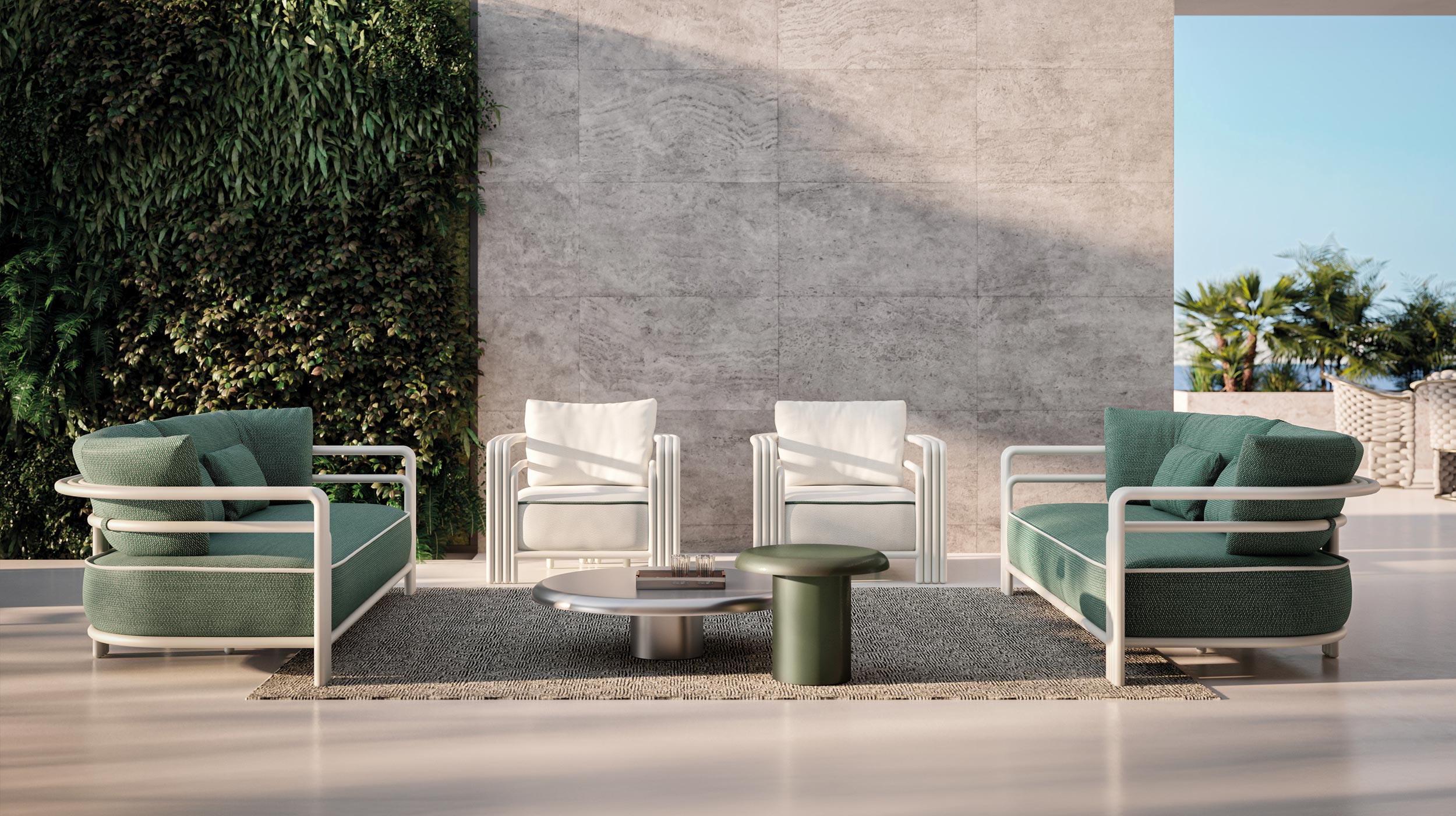 Completing the collection is the Capri Sofa, which shares the same architectural structure and attention to volume and detailing. Together, they offer a cohesive, modular solution for refined outdoor environments, where design and functionality coexist in perfect harmony.
