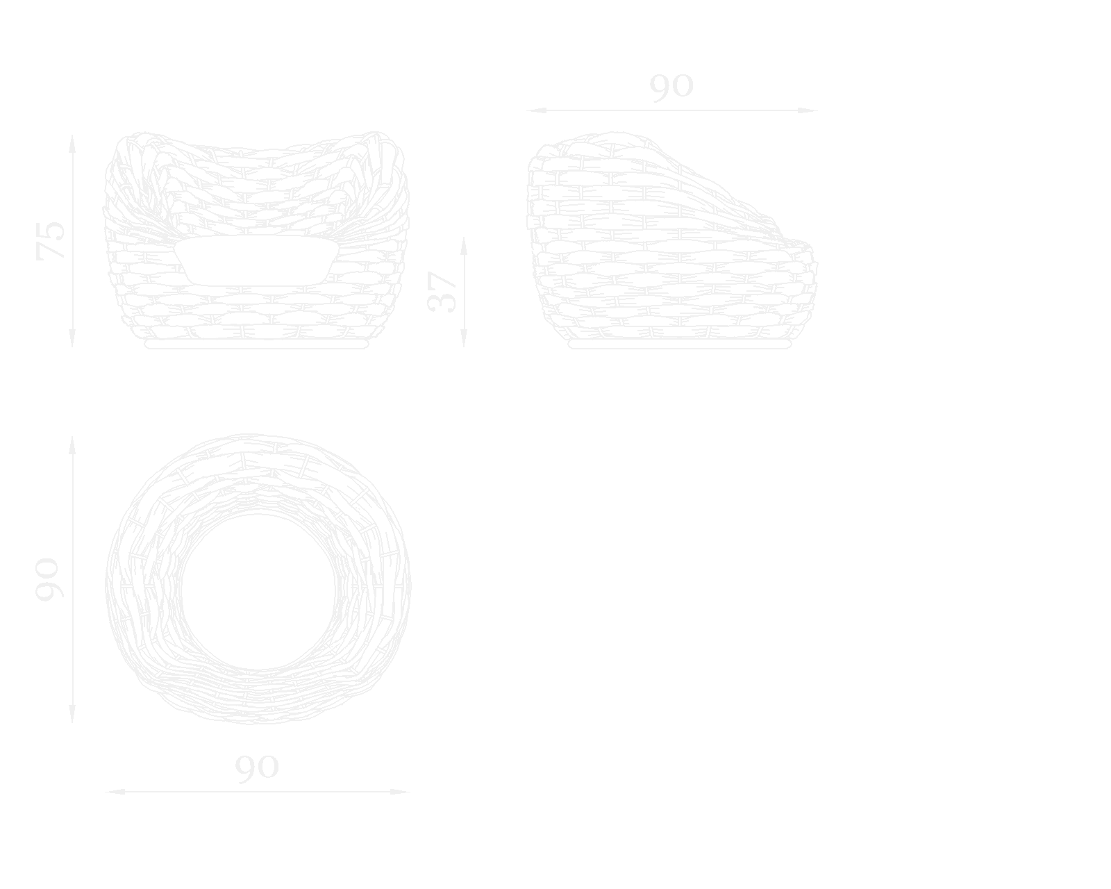 At the center, the circular cushion provides a generous and inviting support, perfect for relaxing on a terrace or in the garden. Nido is an armchair that furnishes with style, merging comfort and aesthetic research in a single design gesture.
