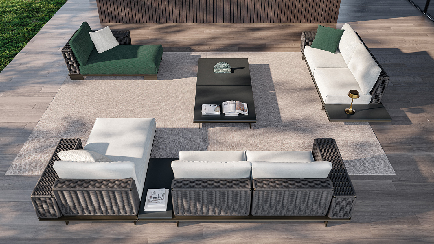 Ideal for modern and essential outdoor settings, Memphis seamlessly complements seating, sofas, and chaise longues with clean lines. A discreet yet distinctive choice for those who seek minimalist elegance and uncompromising quality.