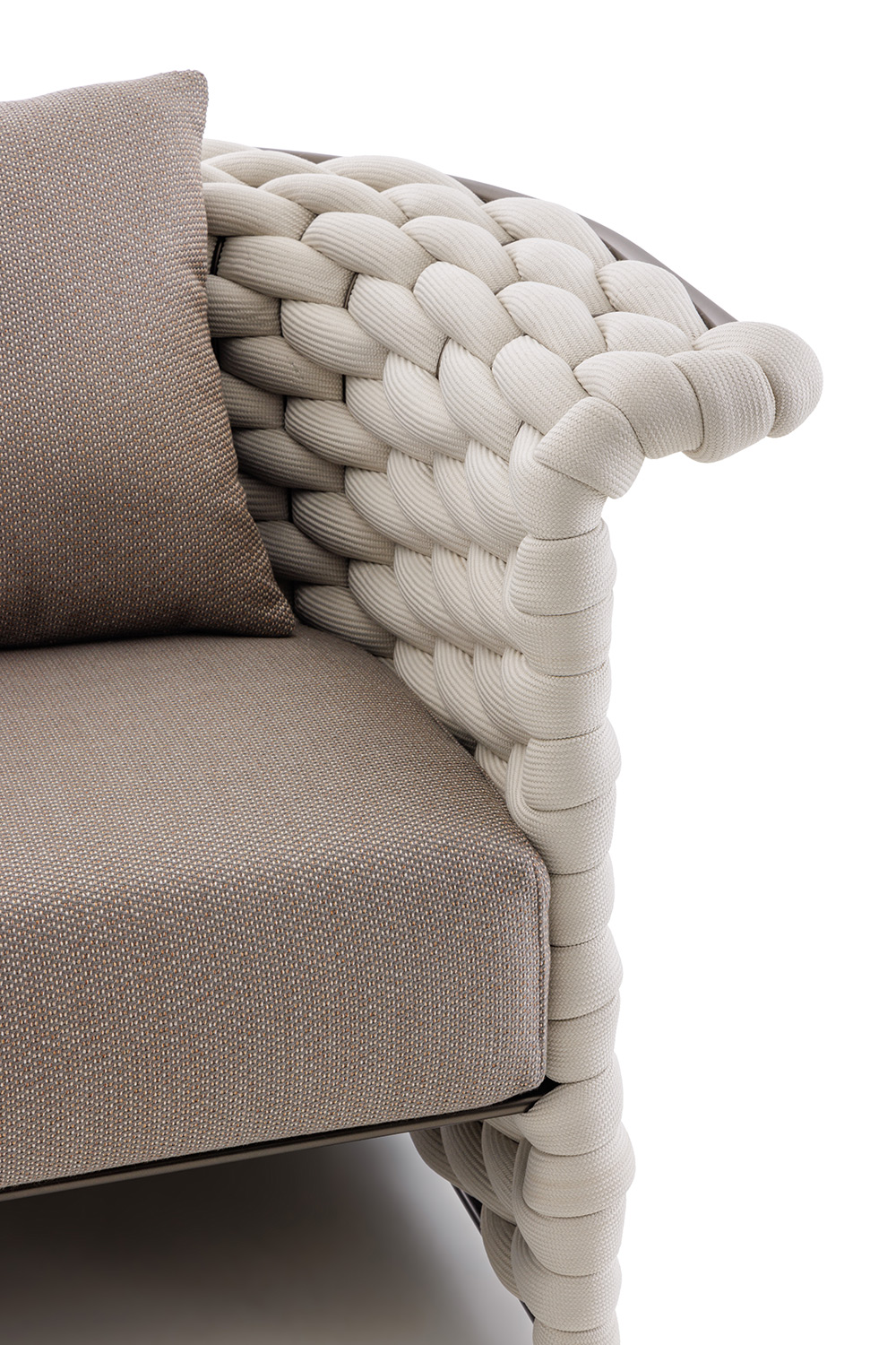The Soft Ropes collection represents the evolution of the outdoor weaving concept towards maximum comfort. These ropes stand out for their increased diameter and a padded inner core that provides superior softness to the touch. The voluminous craftsmanship simulates the warmth and coziness of indoor fabrics, transforming outdoor sofas and armchairs into havens of pure relaxation.