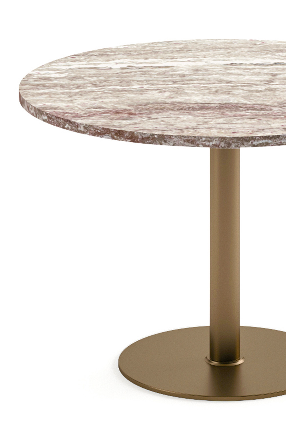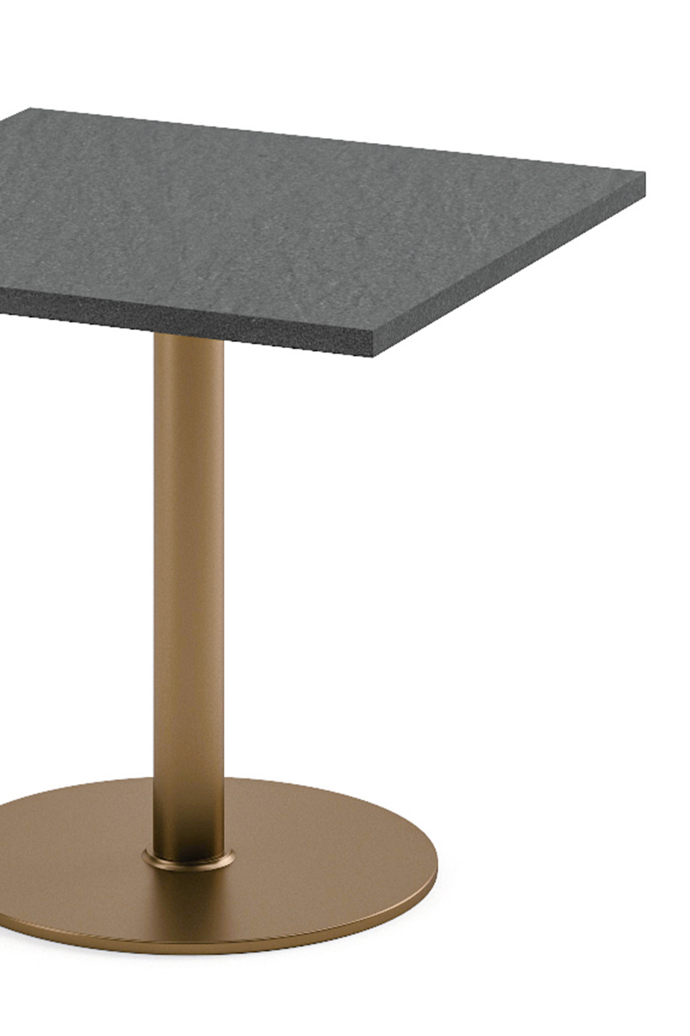 The top, made of natural stone with a beveled edge and honed finish, enhances the material’s veins and texture, delivering a sculptural yet discreet presence.
