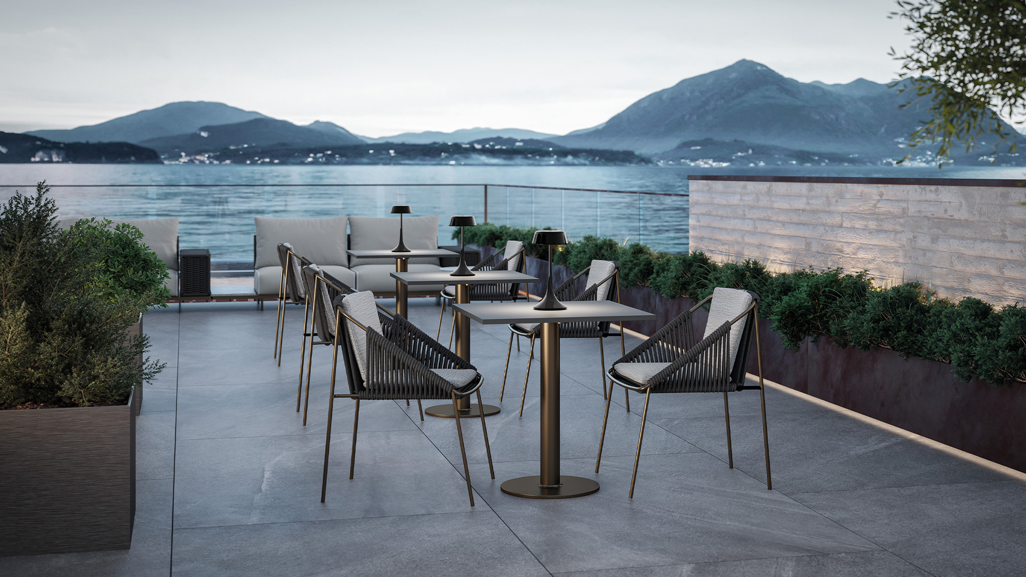 The Wood table is designed to meet the needs of contemporary outdoor living, combining functionality and refined form in a compact yet highly distinctive piece.