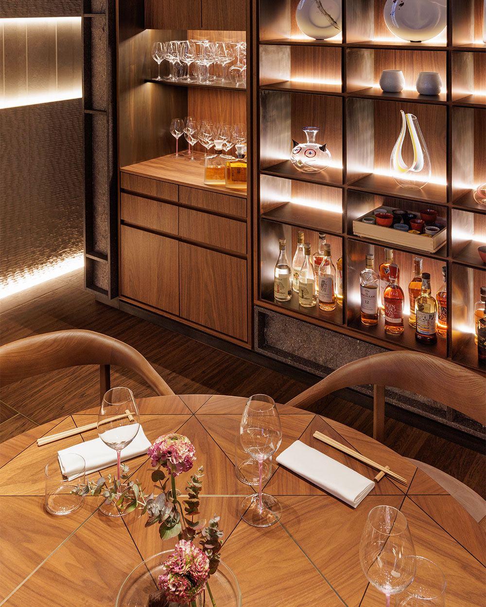Every detail reflects the same craftsmanship found in Chef Niimori's cuisine, merging Italian artisanal excellence with Japanese aesthetic precision in a refined setting.