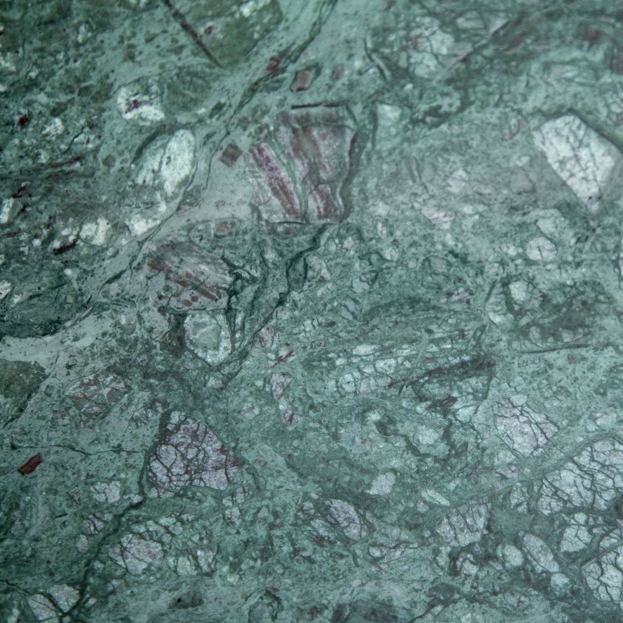 Marmo dal carattere deciso, con stratificazioni fluide di verde e grigio. Trasforma il piano del tavolo in un elemento naturale dinamico e di grande valore decorativo.