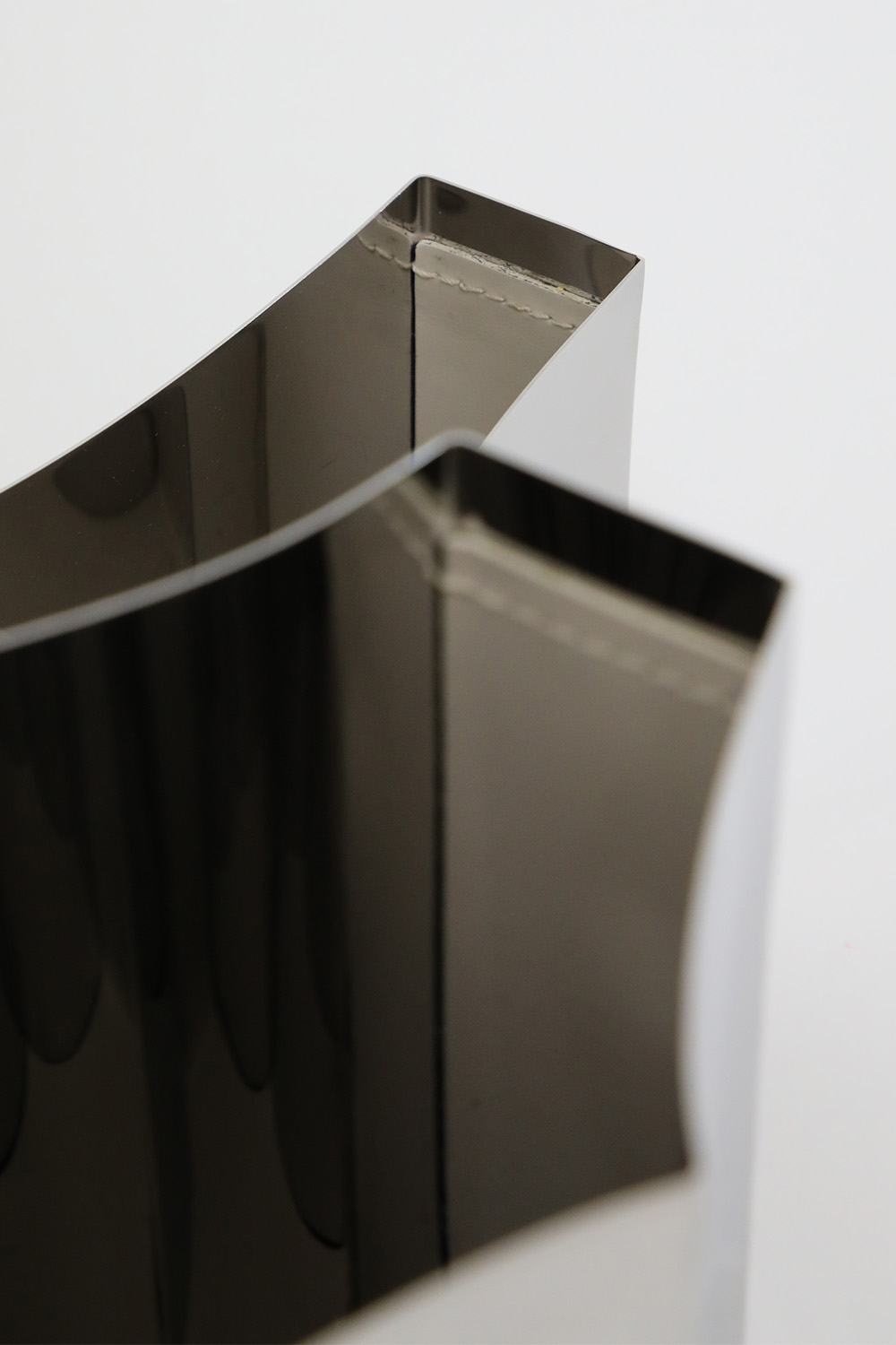 Una finitura galvanica d'avanguardia che unisce la riflettenza del cromo a una tonalità scura e magnetica. Ideale per progetti contemporanei che ricercano un lusso tecnico e deciso.