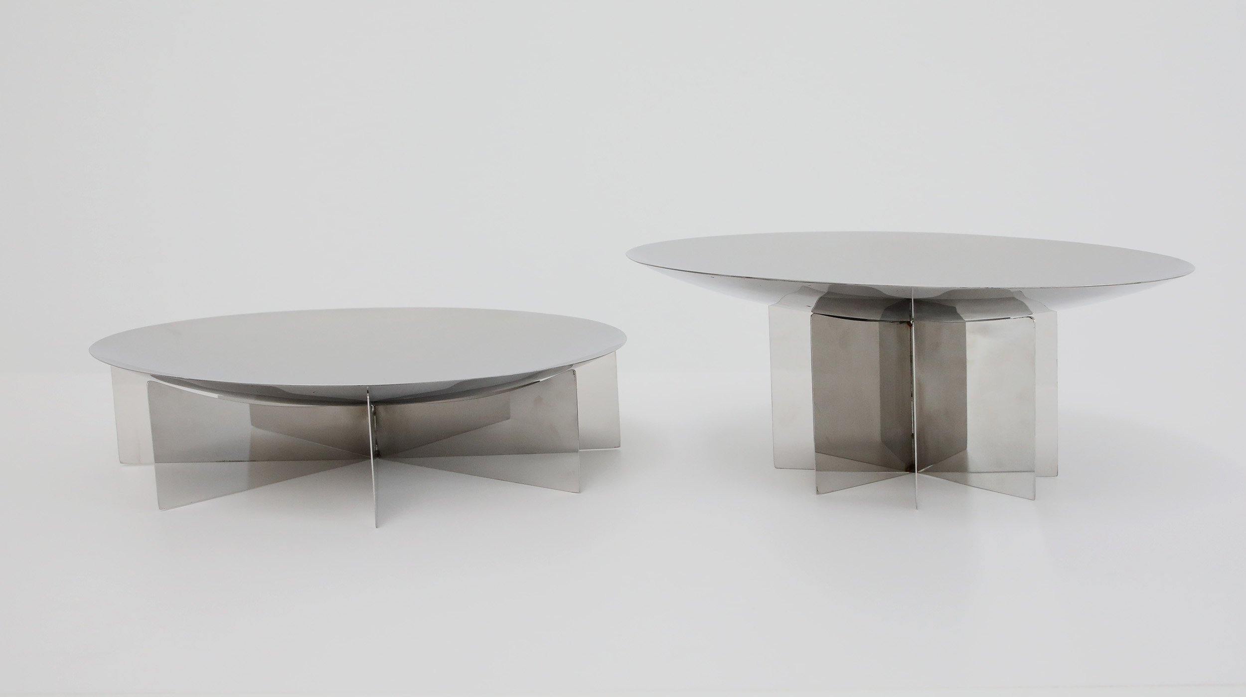Una superficie tecnica e minimale. La spazzolatura fine dell'acciaio crea una texture opaca e professionale, resistente e luminosa, perfetta per esaltare il design geometrico dei basamenti.Una superficie tecnica e minimale. La spazzolatura fine dell'acciaio crea una texture opaca e professionale, resistente e luminosa, perfetta per esaltare il design geometrico dei basamenti.