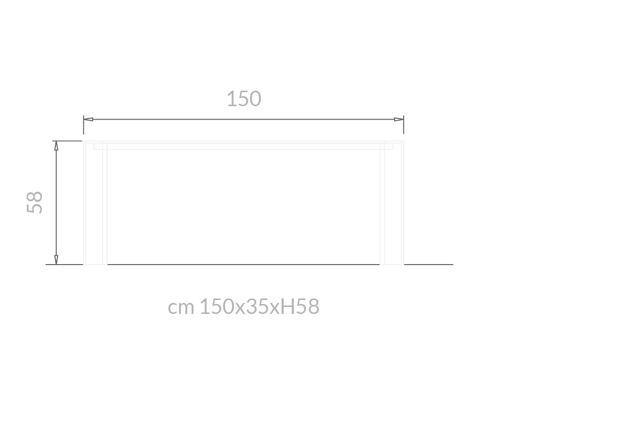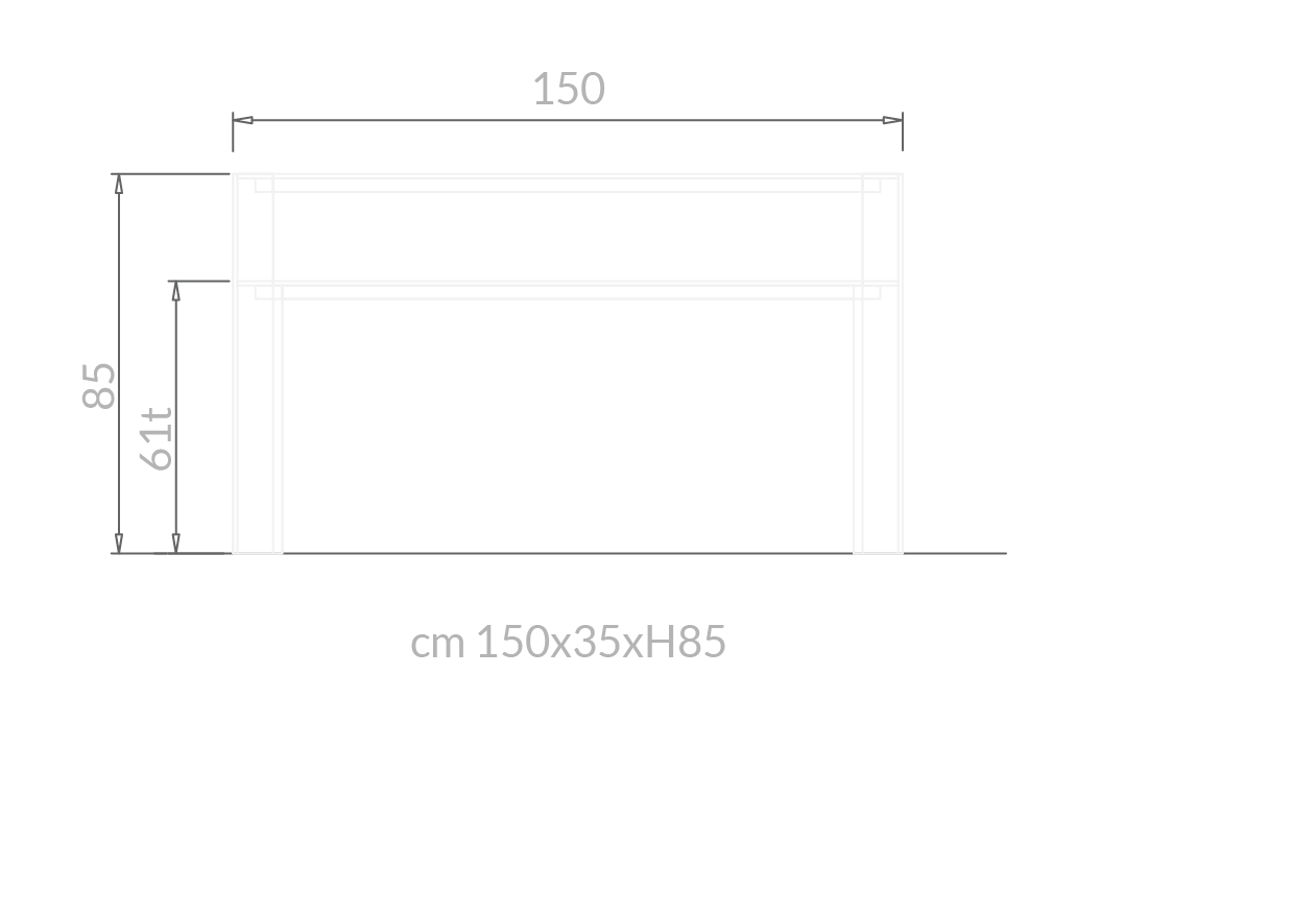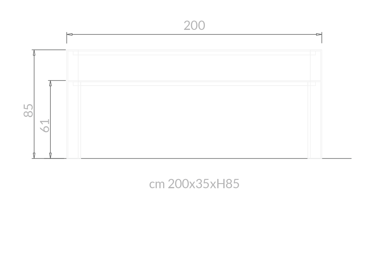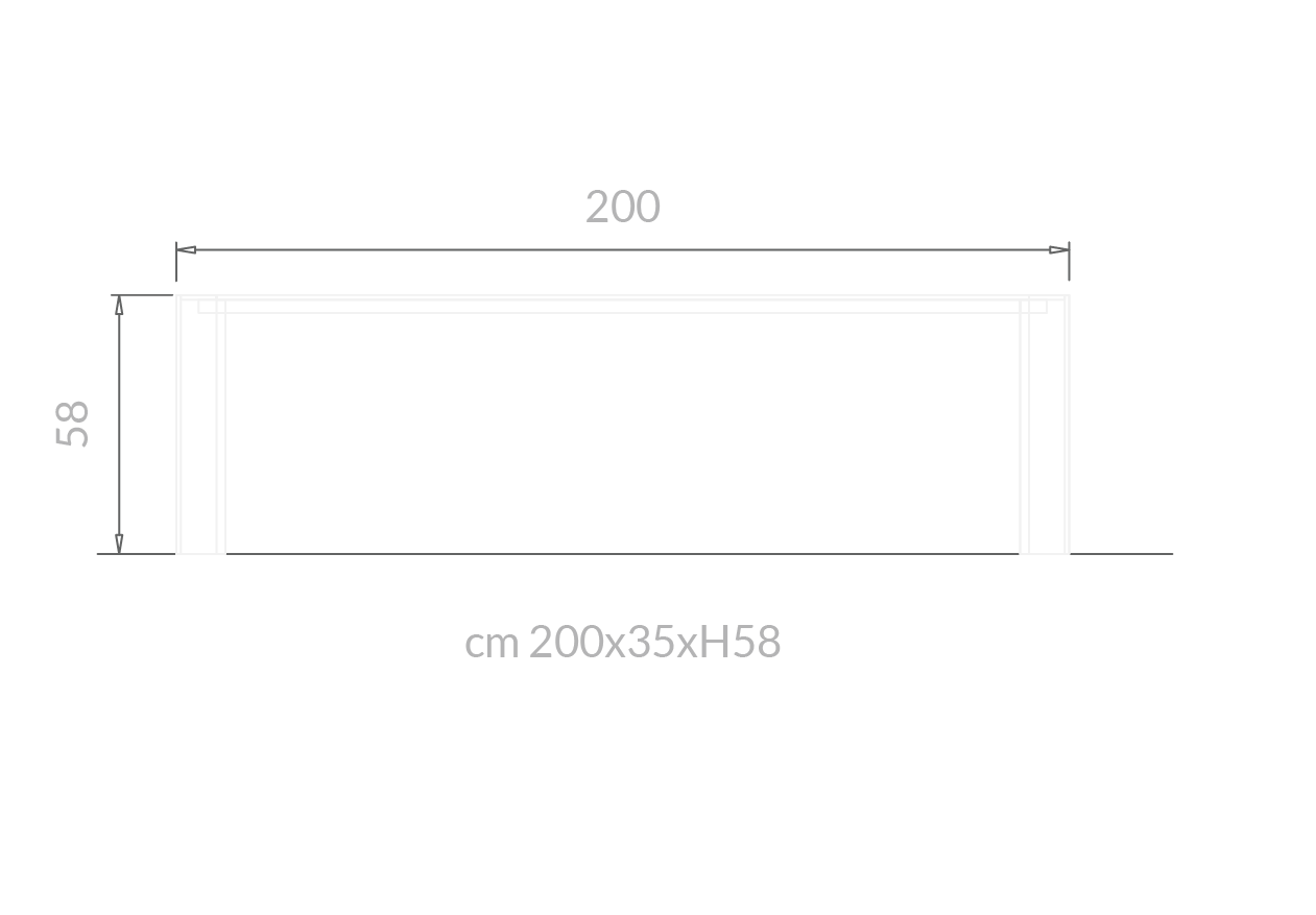 Linee essenziali compongono la console. Due piani in vetro incorniciati dalla struttura in bronzo.