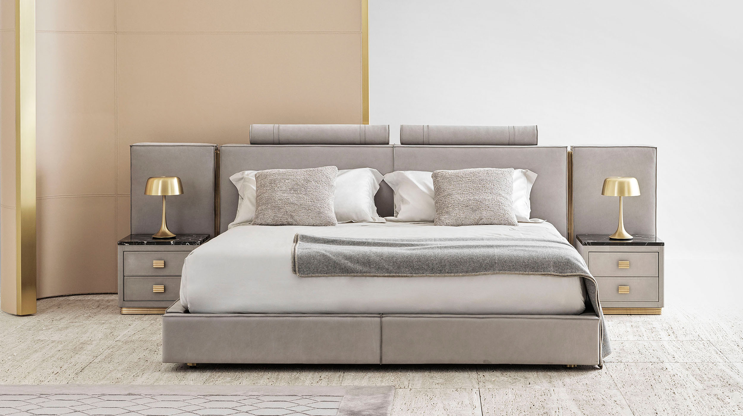 La base con inserti in ottone lucido completa l’insieme con un tratto distintivo, sollevando visivamente il volume e donando leggerezza alla sua presenza. Rubik è un comodino che unisce funzionalità e stile con un linguaggio estetico sobrio, raffinato e perfettamente coerente con l’eleganza senza tempo di Rugiano.