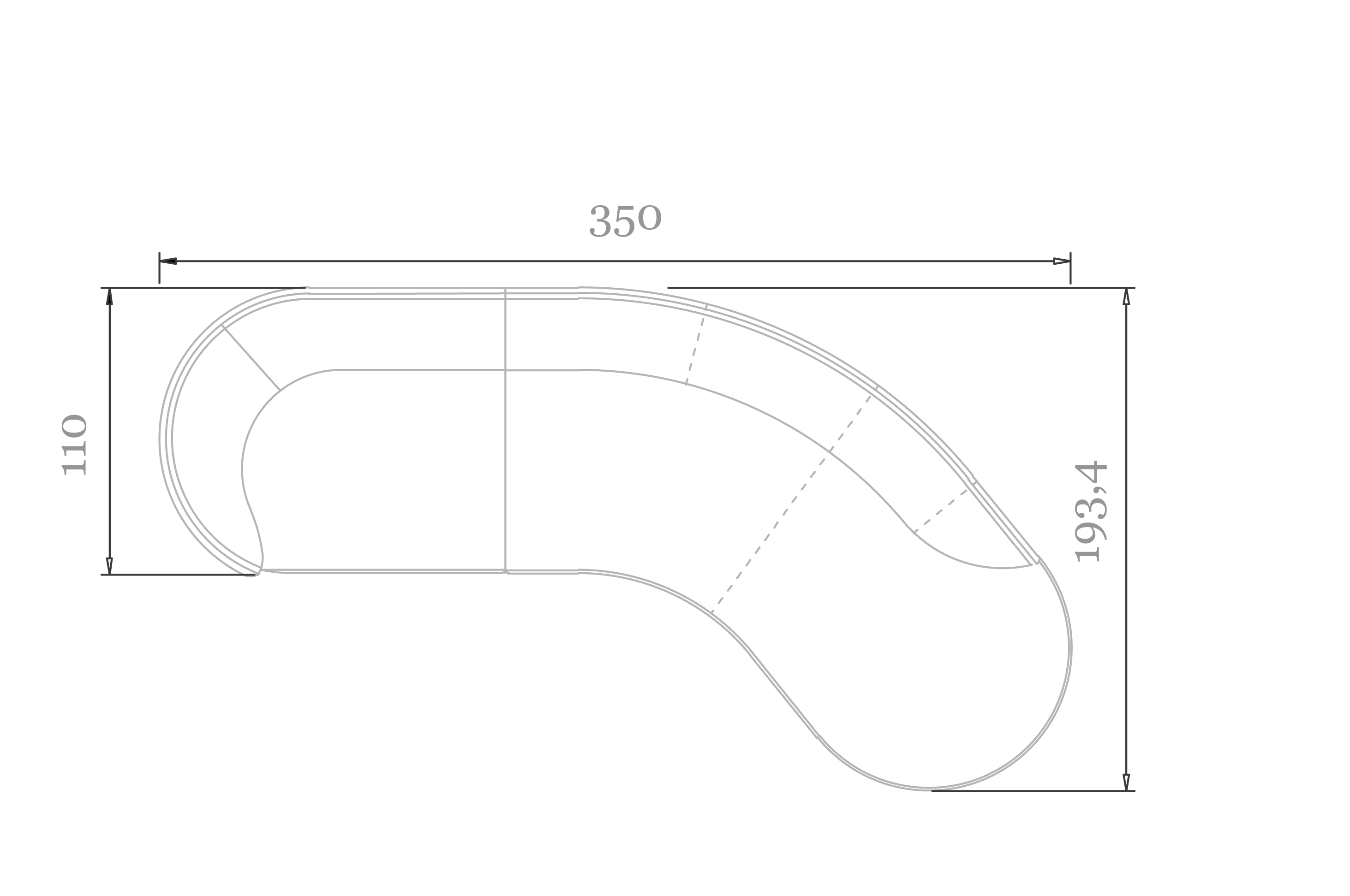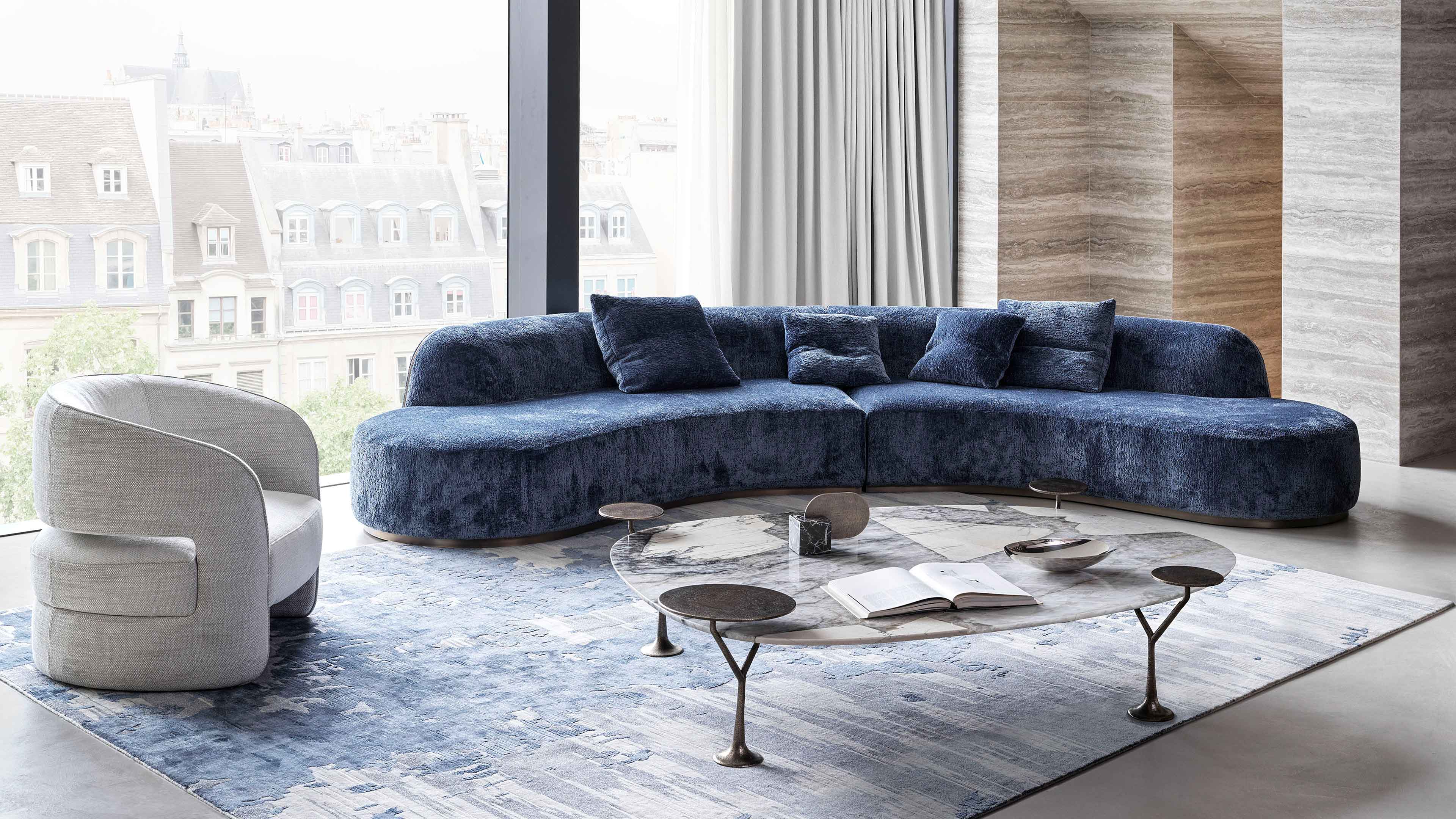 Collezione di imbottiti componibile. I terminali e l’elemento ad angolo curvati permettono di creare composizioni sinuose a particolari.
