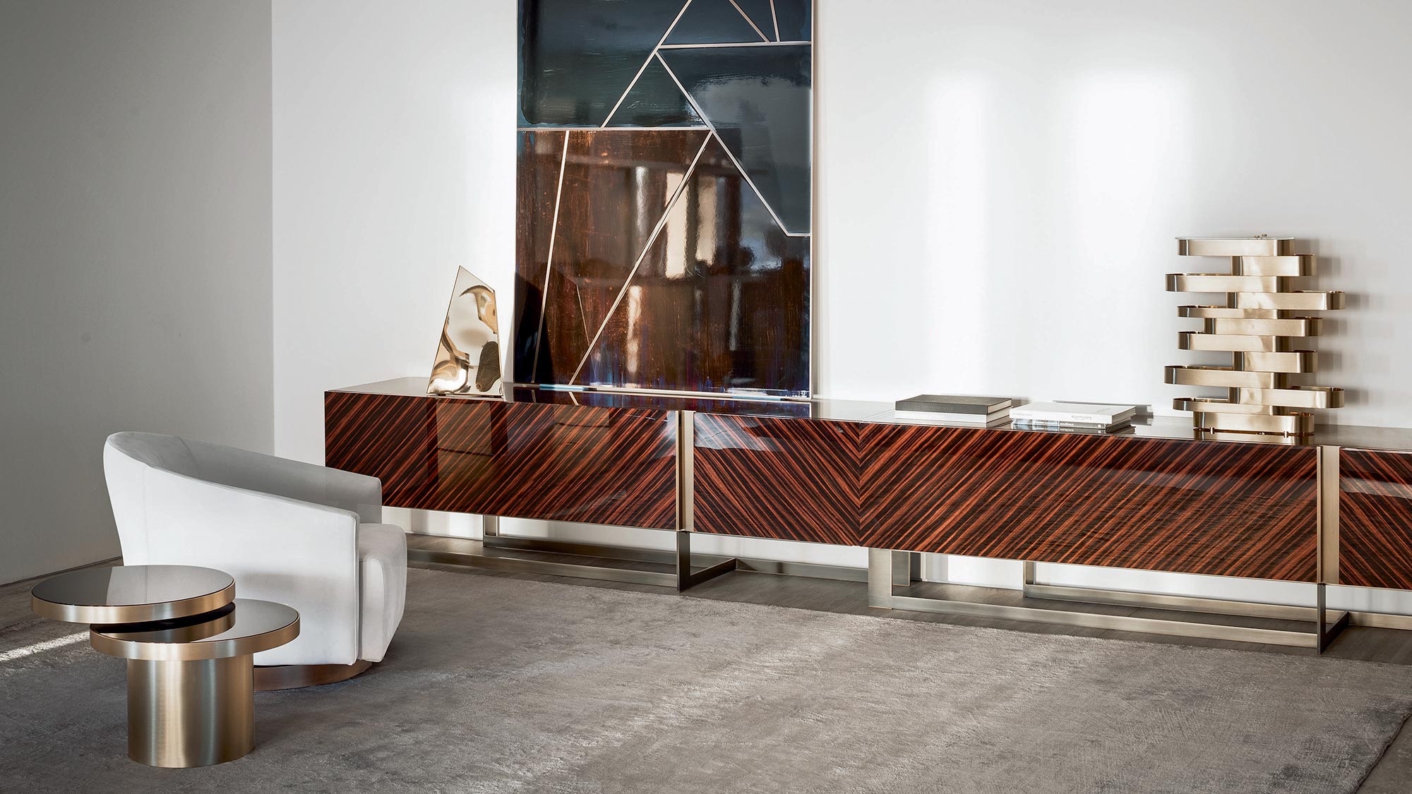 Ampia collezione di lampade in ottone, dalla sospensione alla lampada da tavolo. Forme lineari armoniosamente accostate.