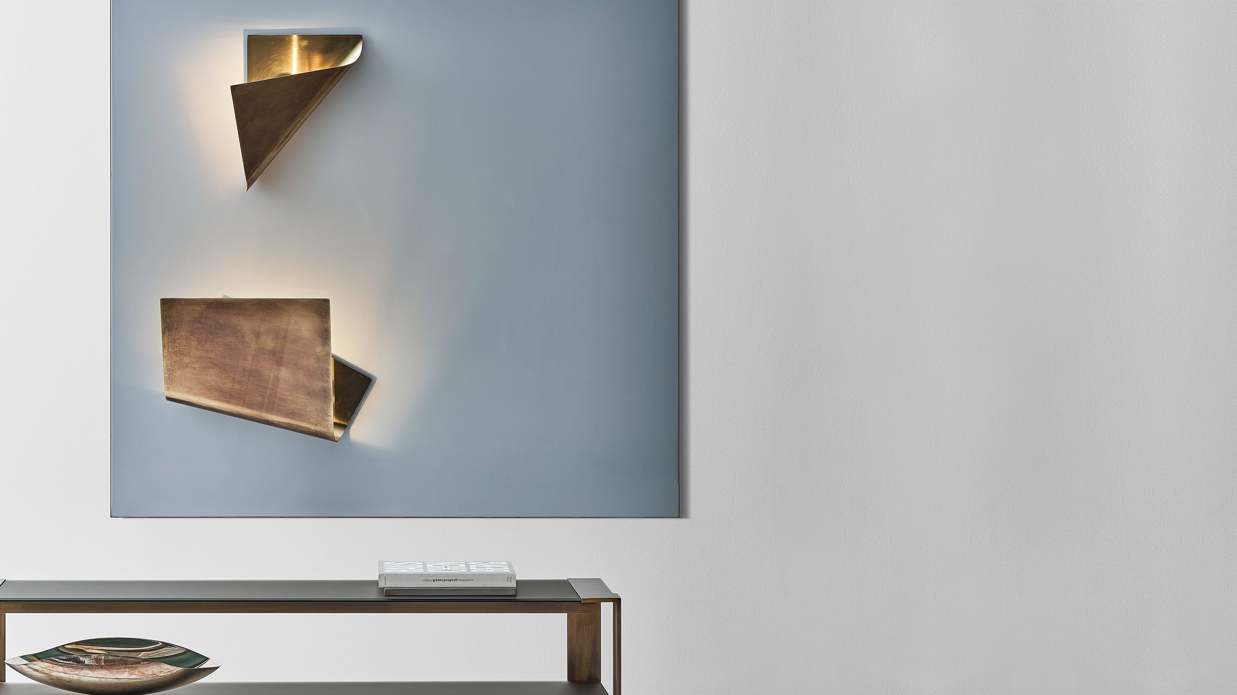 Diverse geometrie ottenute da una lamiera piegata che creano giochi di luce mettendo in risalto le pareti su cui vengono applicate. Leaf è una collezione di lampade appliques bronzate che si prestano a vari utilizzi in tutti gli ambienti della casa.