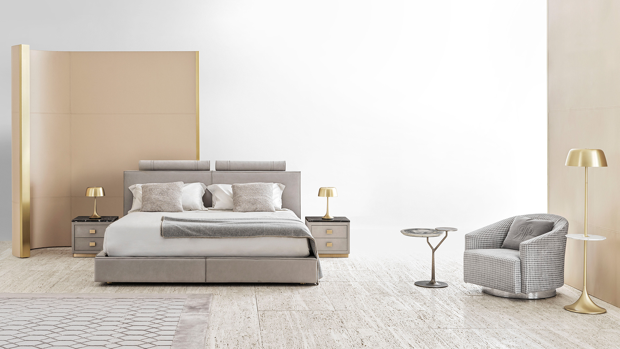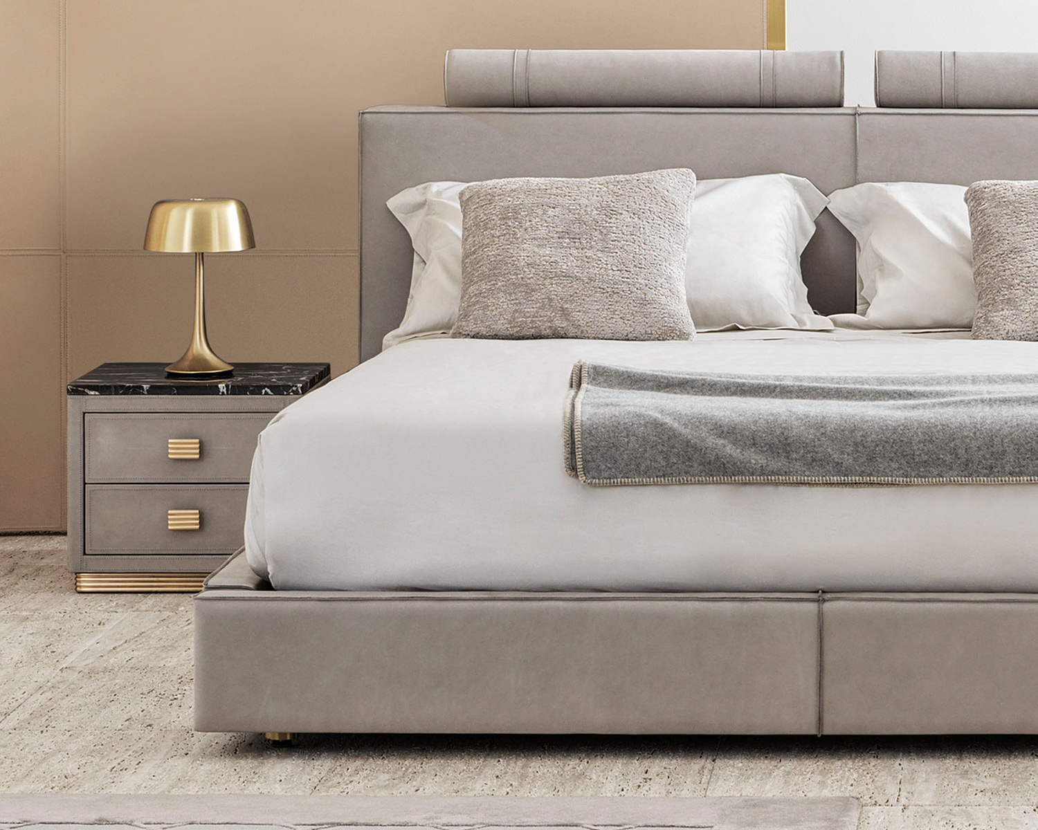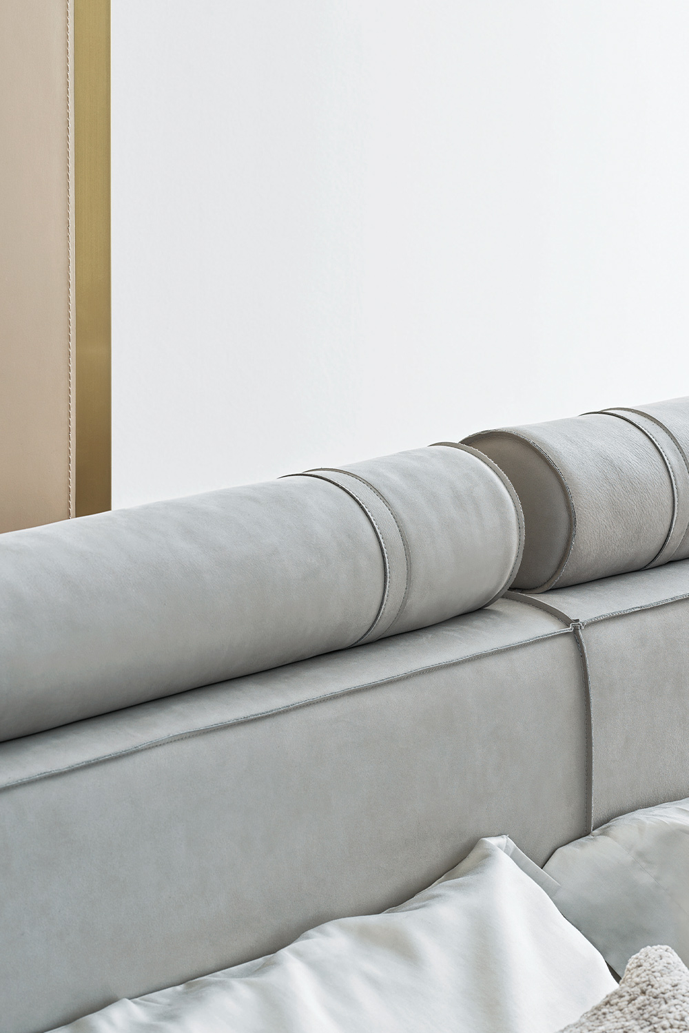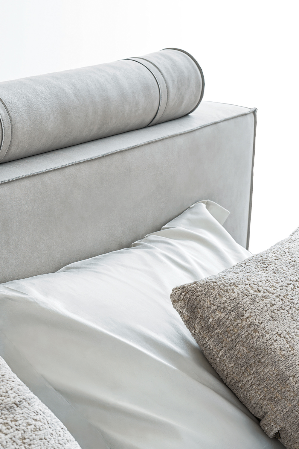 Il letto Rubik si distingue per le sue linee pulite e rigorose, che esprimono un’eleganza sobria e sofisticata. La testiera imbottita, composta da pannelli geometrici con morbidi cuscini superiori, interpreta il comfort in chiave architettonica, offrendo sostegno e accoglienza con proporzioni perfettamente bilanciate. La modularità della composizione conferisce leggerezza visiva e un’estetica contemporanea di grande equilibrio.