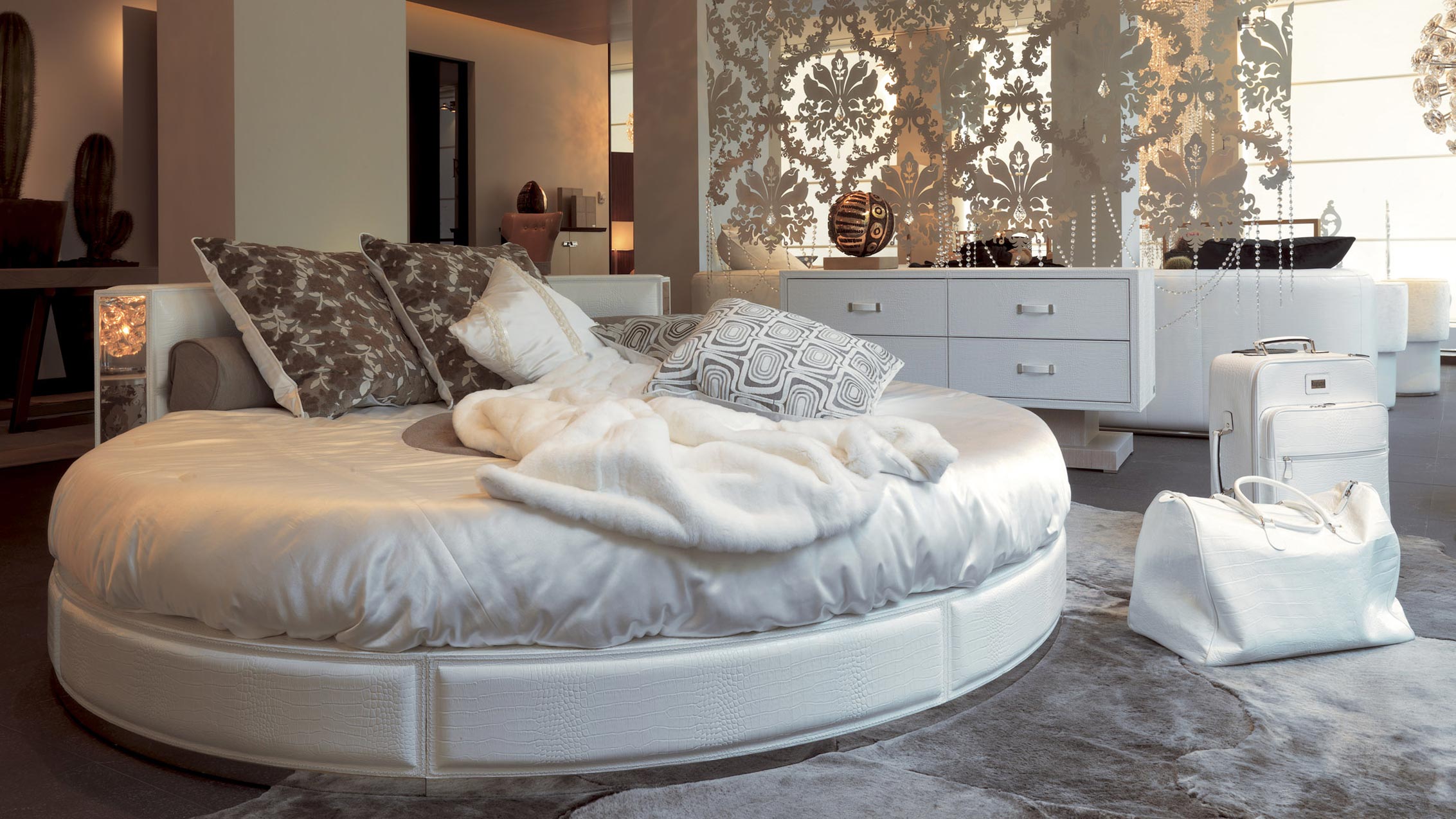 Venus si distingue per la sua forma circolare e il carattere fortemente scenografico, un letto che diventa protagonista assoluto dello spazio notte. Le linee morbide e la struttura avvolgente creano un effetto di continuità e armonia, trasformando il riposo in un gesto di raffinata sensualità. La geometria perfetta del cerchio incontra la leggerezza dei volumi, dando vita a un equilibrio di proporzioni e comfort visivo.