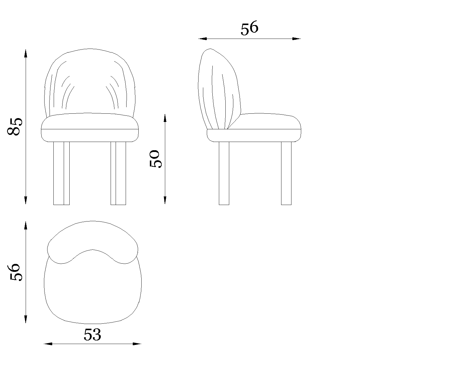 La Sedia Fandango traduce l’identità della collezione in un gesto essenziale ma ricco di carattere: una silhouette compatta, dalle proporzioni piene e armoniose, definita da linee morbide che invitano al contatto. Lo schienale arrotondato, protagonista della composizione, accoglie con naturalezza e si distingue per un drappeggio leggero e irregolare, che dona movimento e profondità alla superficie, evocando l’eleganza informale di un tessuto modellato a mano.