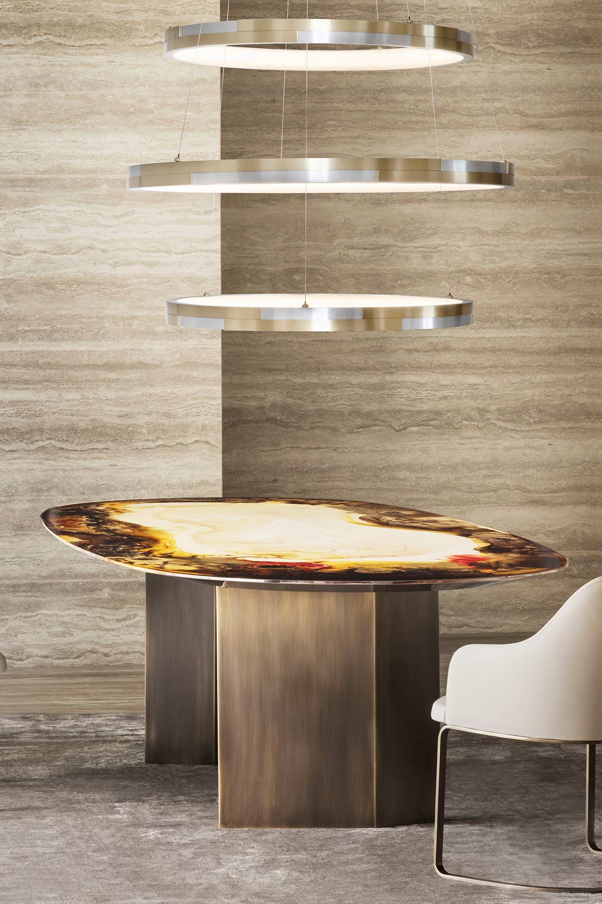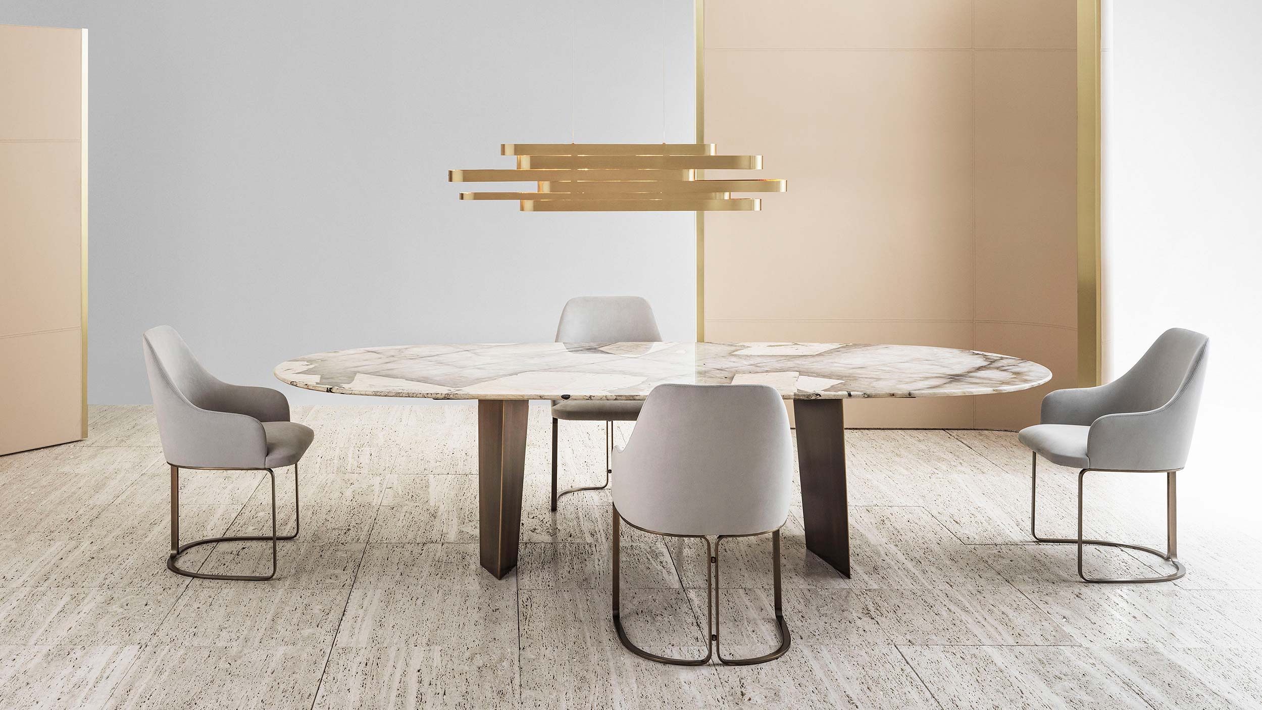 Basi scultura in bronzo. Piano ovale disponibili in diverse misure in legno, marmo o decorati.