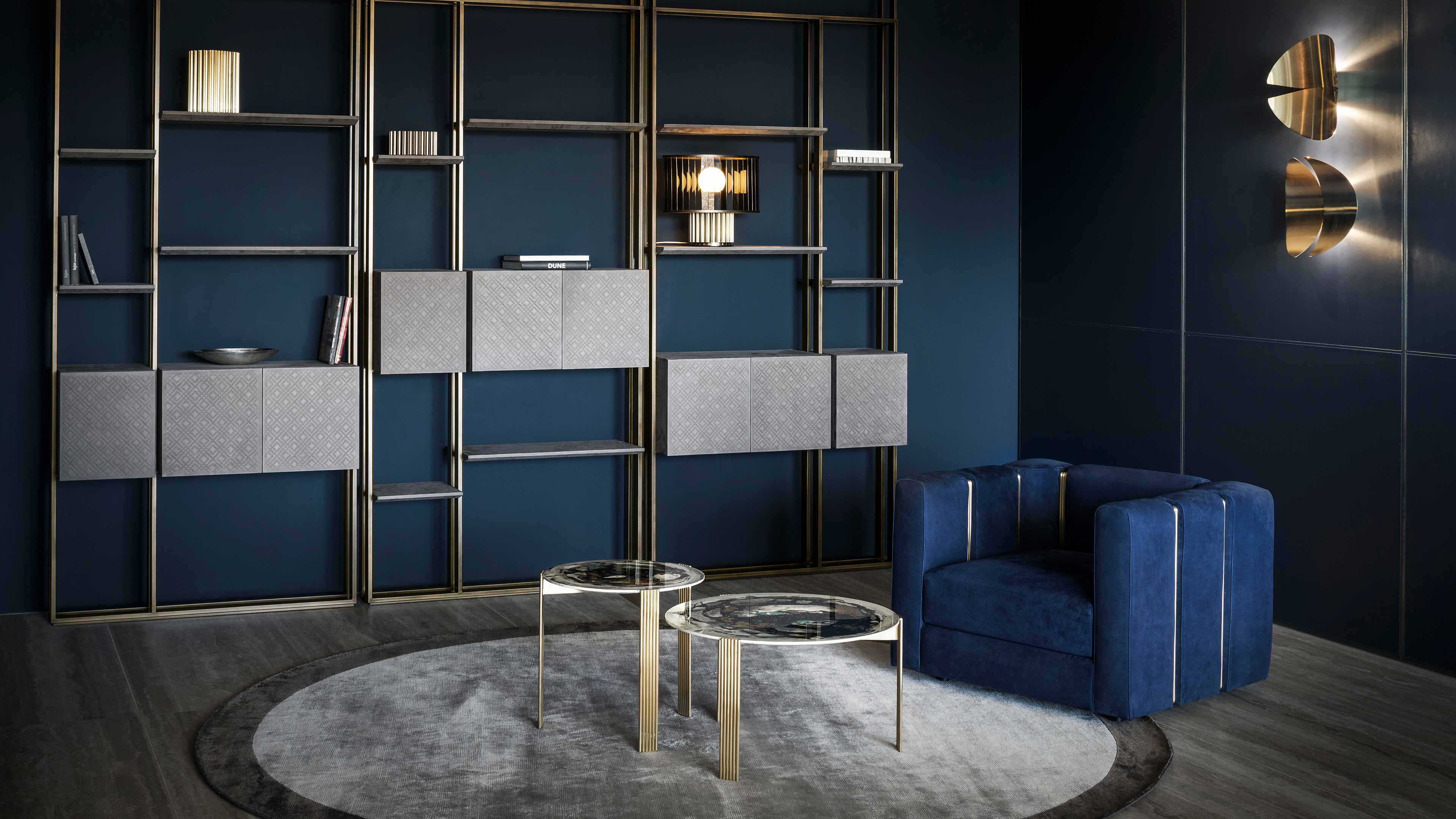 Basi in ottone spazzolato. Caratteristica la trafila che da vita alle gambe. Diverse altezze, piani tondi ed un ovale irregolare disponibili in marmo o decorati.