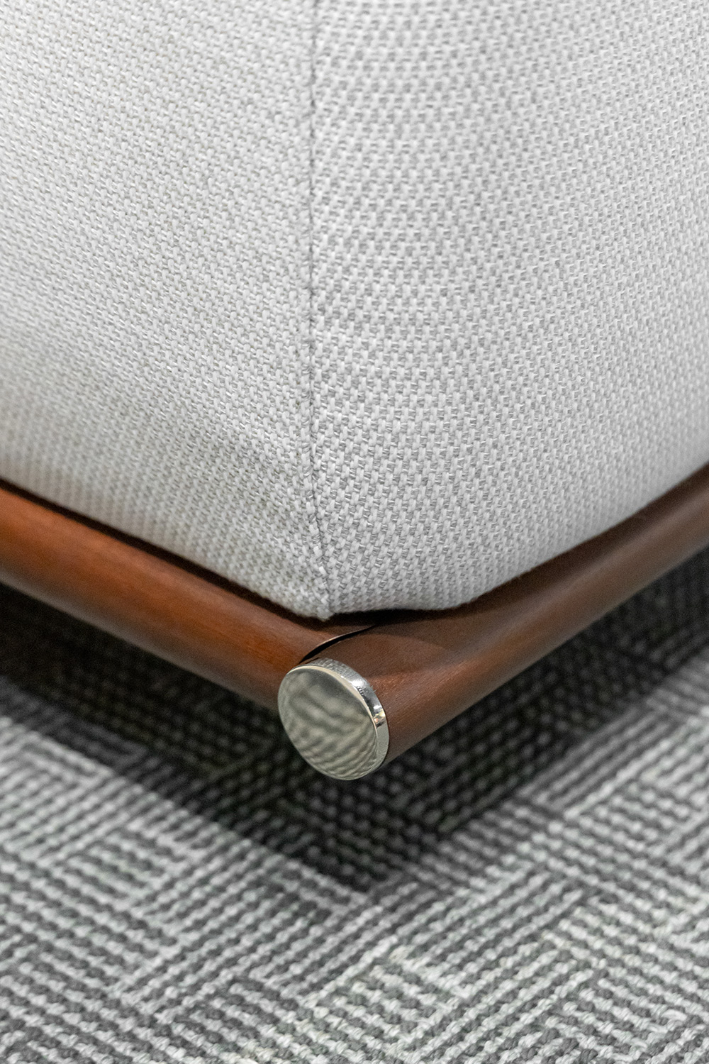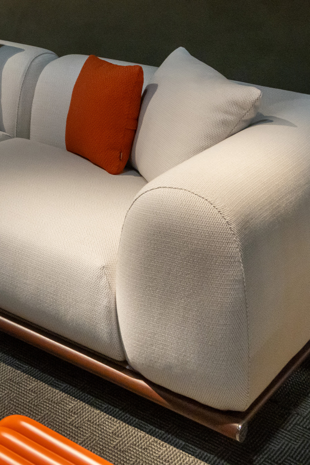Amalfi è il divano che ridefinisce l’outdoor contemporaneo, con volumi generosi e un’estetica pulita, pensata per dialogare con l’ambiente circostante in modo discreto ma autorevole. Le sue linee morbide e monolitiche si appoggiano su una base in mogano massello, impreziosita da dettagli cromati che riflettono la luce naturale con delicatezza.