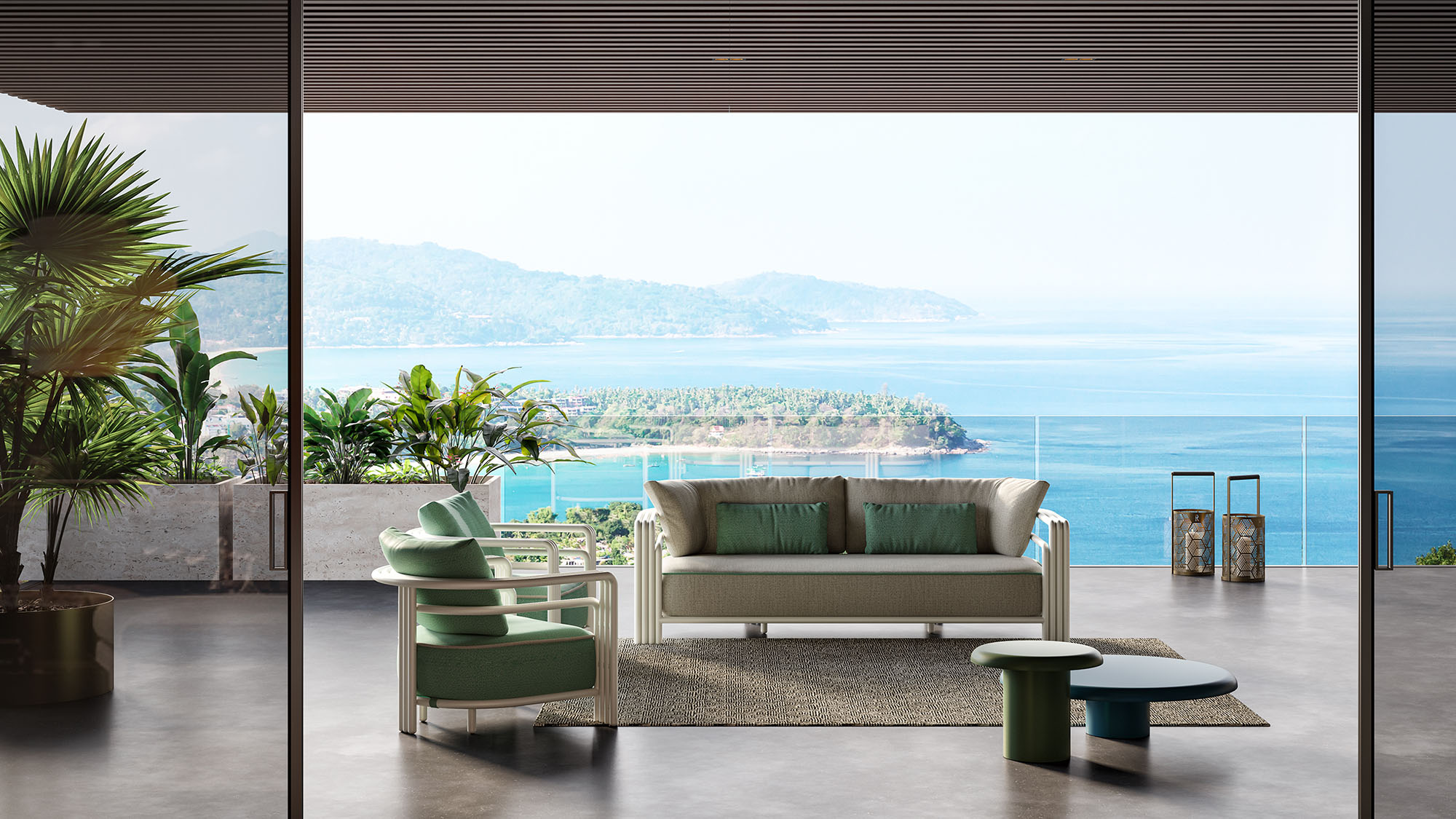 A completare la collezione, la poltrona Capri, con la medesima struttura architettonica e la stessa cura nei volumi e nei dettagli, offre una soluzione coerente e modulabile per ambienti outdoor raffinati, dove design e funzionalità dialogano in perfetta armonia. Capri è una dichiarazione di lusso per chi desidera vivere l’outdoor con carattere, equilibrio e raffinatezza.