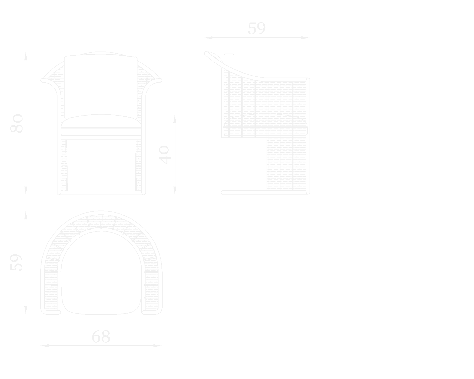 Attorno al telaio si avvolge una corda intrecciata a mano, che abbraccia la sedia con un gesto continuo e fluido, aggiungendo matericità, calore e ritmo grafico alla composizione. Un dettaglio che non è solo decorativo, ma testimonia l’artigianalità e la cura sartoriale che da sempre definiscono il mondo Rugiano.