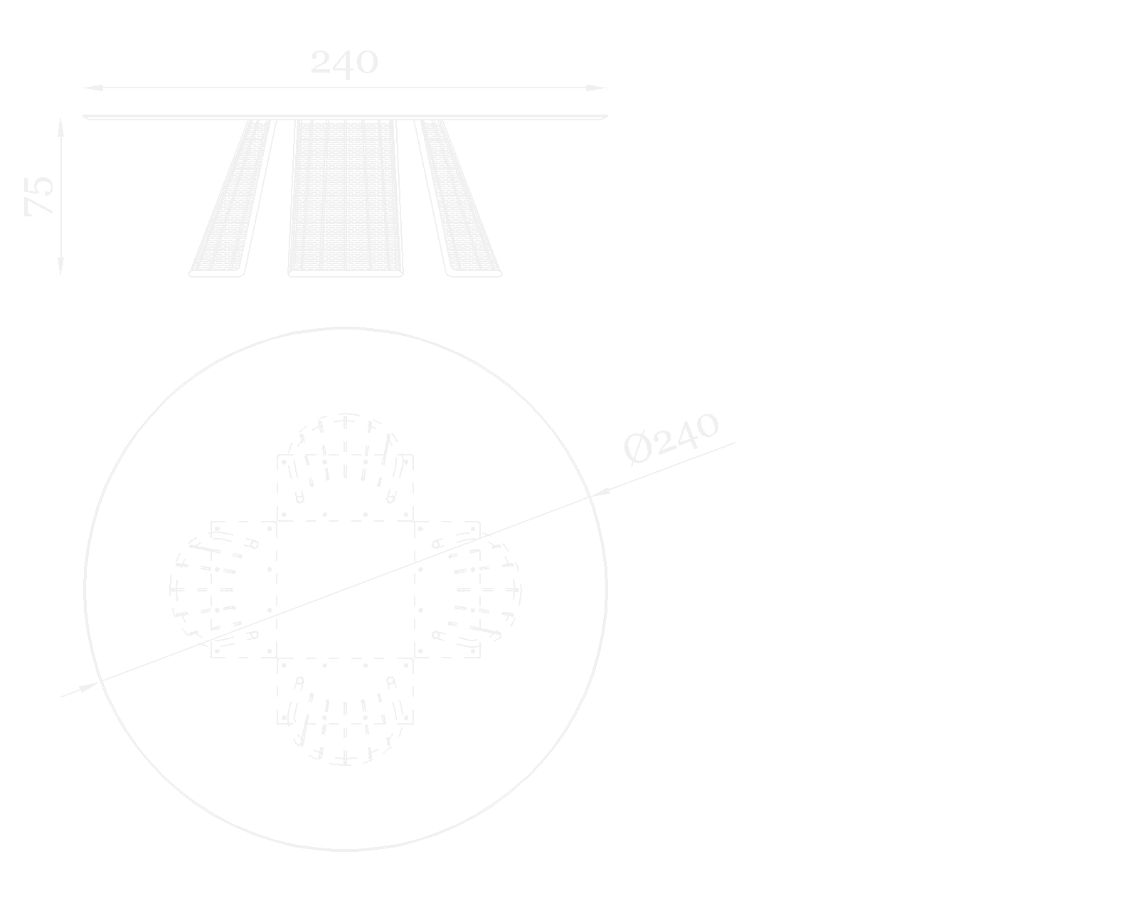 Il piano in pietra naturale da 2 cm, perfettamente levigata, con bisello, studiato per valorizzare la ricchezza materica della superficie. Il formato tondo invita alla condivisione, trasformando ogni momento outdoor in un’esperienza fluida e accogliente.