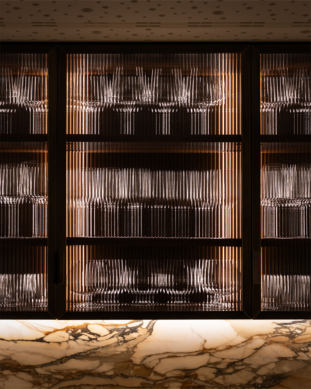 Completano l’atmosfera le scenografiche librerie Frame, arricchite da preziosi ripiani in marmo e strutture lineari. Un connubio perfetto tra materiali nobili e forme contemporanee che crea un ambiente sofisticato, esclusivo e dal fascino senza tempo.